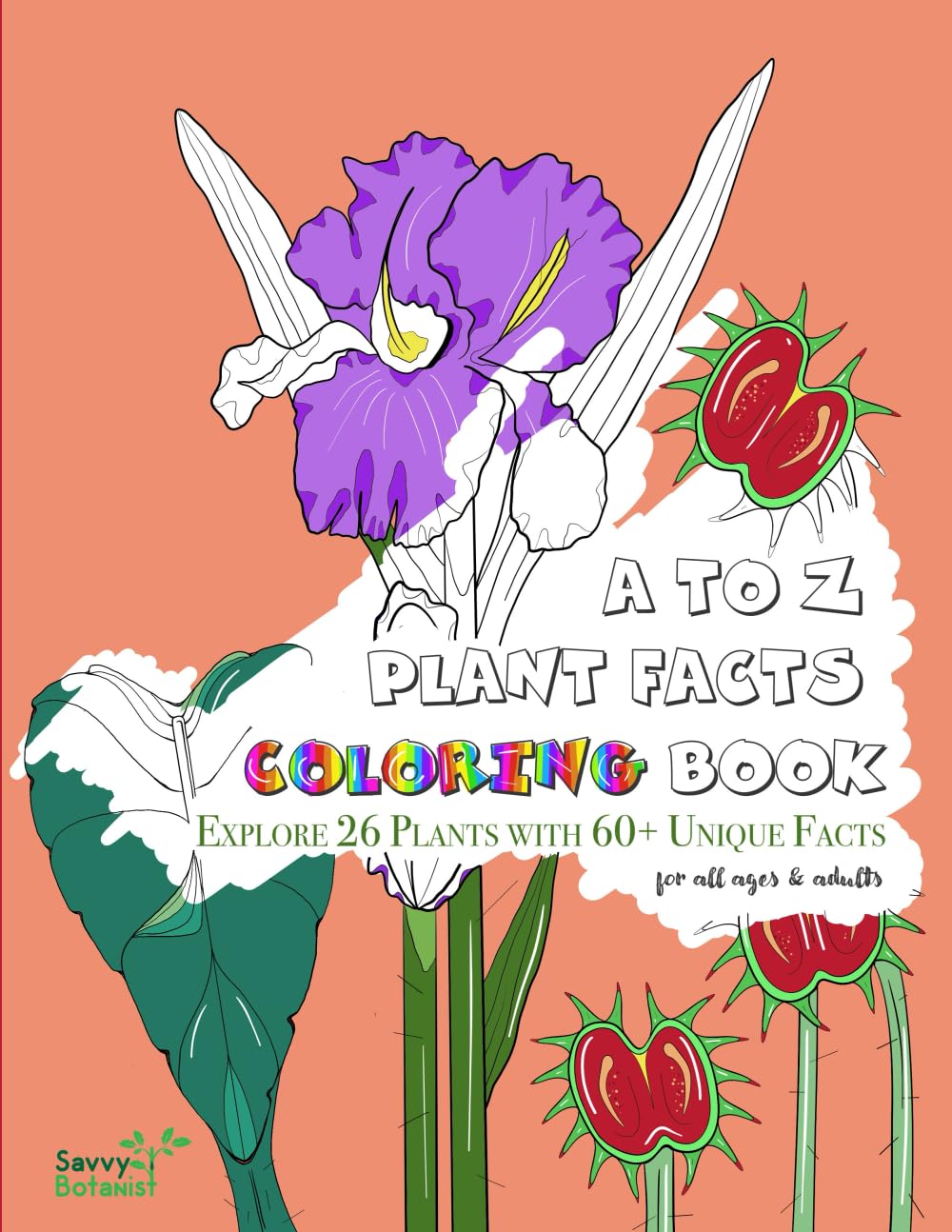 Embark on a captivating botanical journey through the alphabet in the “A to Z Plant Facts Coloring Book”, where every letter unveils a new and fascinating fact about the wonders of nature. Delve into the world of plants, from the tasty Kiwi Vines, to the healing gel of Aloe, and the carnivorous pitcher plants that offer natural pest control. the “A to Z Plant Facts Coloring Book” is a kaleidoscopic celebration of the botanical wonders that surround us! Dr Megan Wilkerson, an environmental scientist and skilled artist, presents 26 meticulously hand-drawn illustrations that bring these botanical marvels to life. Each design is thoughtfully paired with captivating plant facts, making it a delightful sharing experience for friends and family. Whether you’re a budding enthusiast or a seasoned expert, this book is an essential celebration of the mesmerizing realm of plants. Our plant alphabet consists of: Aloe Vera, Baobab tree, Christmas Cactus, Dandelion, Elephant Ear, False Shamrock, Geranium, Hibiscus, Iris, Jade, Kiwi Vine, Lavender, Marigold, Nasturtium, Orchid, Pitcher plant, Queen Anne's Lace, Rafflesia, Sunflower, Tulip, Upland Cotton, Venus Fly Trap, White Baneberry, Xerophyte, Yuca and Zucchini. Join us in celebrating the beauty and knowledge of nature's green tapestry.