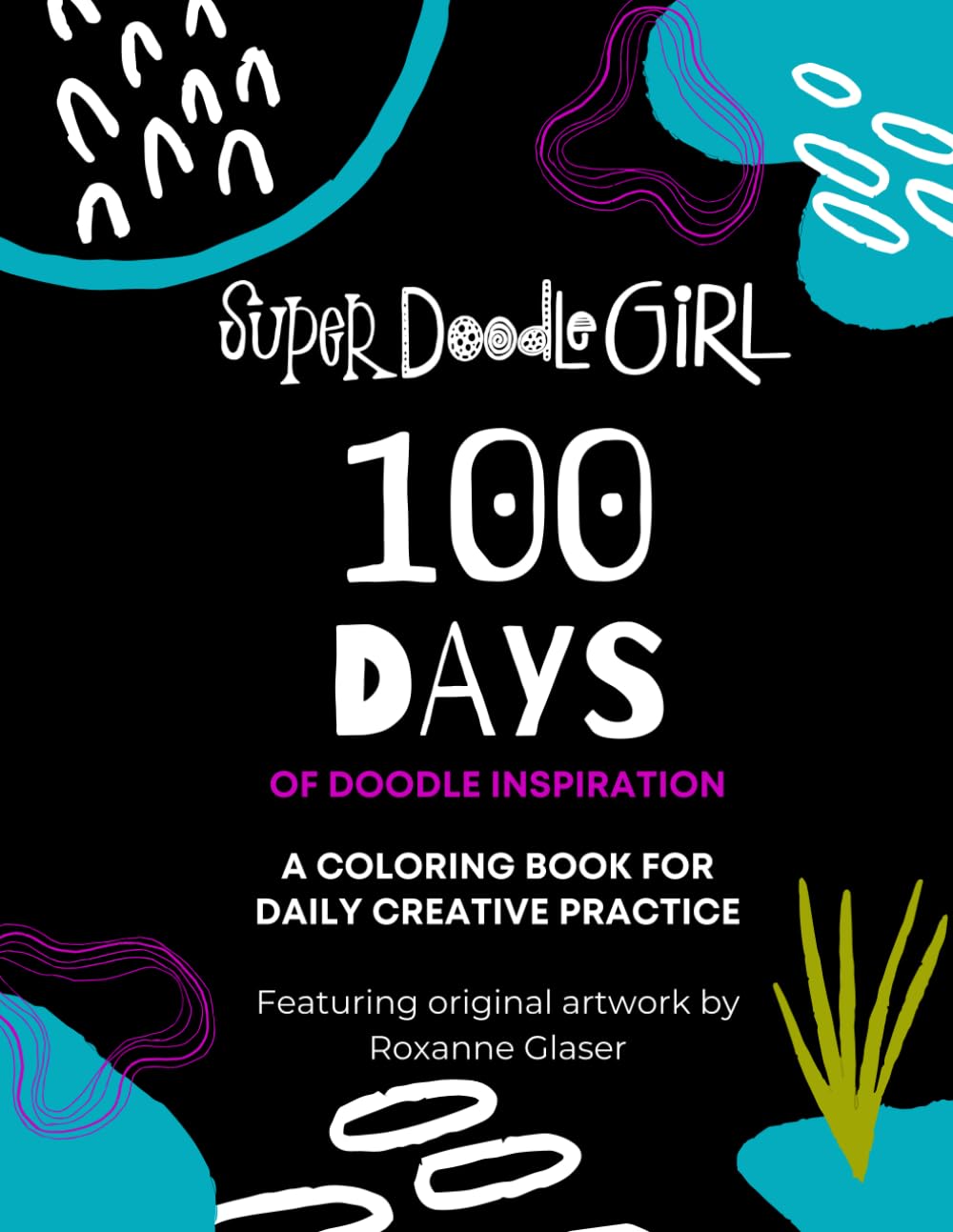 Embark on a 100-day journey of creativity and self-discovery with the latest coloring book from talented artist Roxanne Glaser, also known as Super Doodle Girl. Following the success of her debut "Embrace Your Journey," Roxanne brings you "100 Days of Inspiration: A Coloring Book for a Daily Creative Practice." This unique coloring book is designed to help you cultivate a daily creative habit, offering 100 beautifully hand-drawn pages of doodles, lettering, and inspiring designs. Each page presents a new opportunity to explore your artistic side and find joy in the simple act of coloring. Key Features: 100 original hand-lettered and illustrated designs - Single-sided pages suitable for all coloring mediums, including markers - A variety of lettering styles, flowing patterns and inspirational quotes - Perfect for adults, teens, and older children looking to develop a creative routine "100 Days of Inspiration" is more than just a coloring book – it's a creative playbook that guides you through a transformative journey. As you progress through the pages, you'll: Practice different lettering styles and color combinations - Develop your own unique artistic voice - Relax your mind and reduce stress through daily creative expression - Build confidence in your artistic abilities Whether you're a seasoned artist or a beginner, this coloring book provides a framework to help you succeed in maintaining a consistent creative practice. Use it to: Jump-start your creativity when you're feeling stuck - Explore new color palettes and techniques - Develop a mindfulness practice through coloring The 5.5" x 8.5" landscape format makes it perfect for on-the-go creativity or as a standout piece on your coffee table. It's an ideal gift for: Art enthusiasts and doodle lovers - Those seeking a mindful, stress-reducing activity - Anyone looking to establish a daily creative habit - Teachers, students, and professionals needing a creative outlet Join a community of fellow creatives by sharing your colored pages on Instagram using the hashtag #CreateWithSDG. Connect with @SuperDoodleGirl for more inspiration and to showcase your progress throughout the 100-day journey. Unlock your creative potential, one page at a time. Order your copy of "100 Days of Inspiration" today and transform your daily routine into a celebration of creativity and self-expression. Remember, the secret to improving your creativity is consistent practice – let Super Doodle Girl guide you every step of the way!