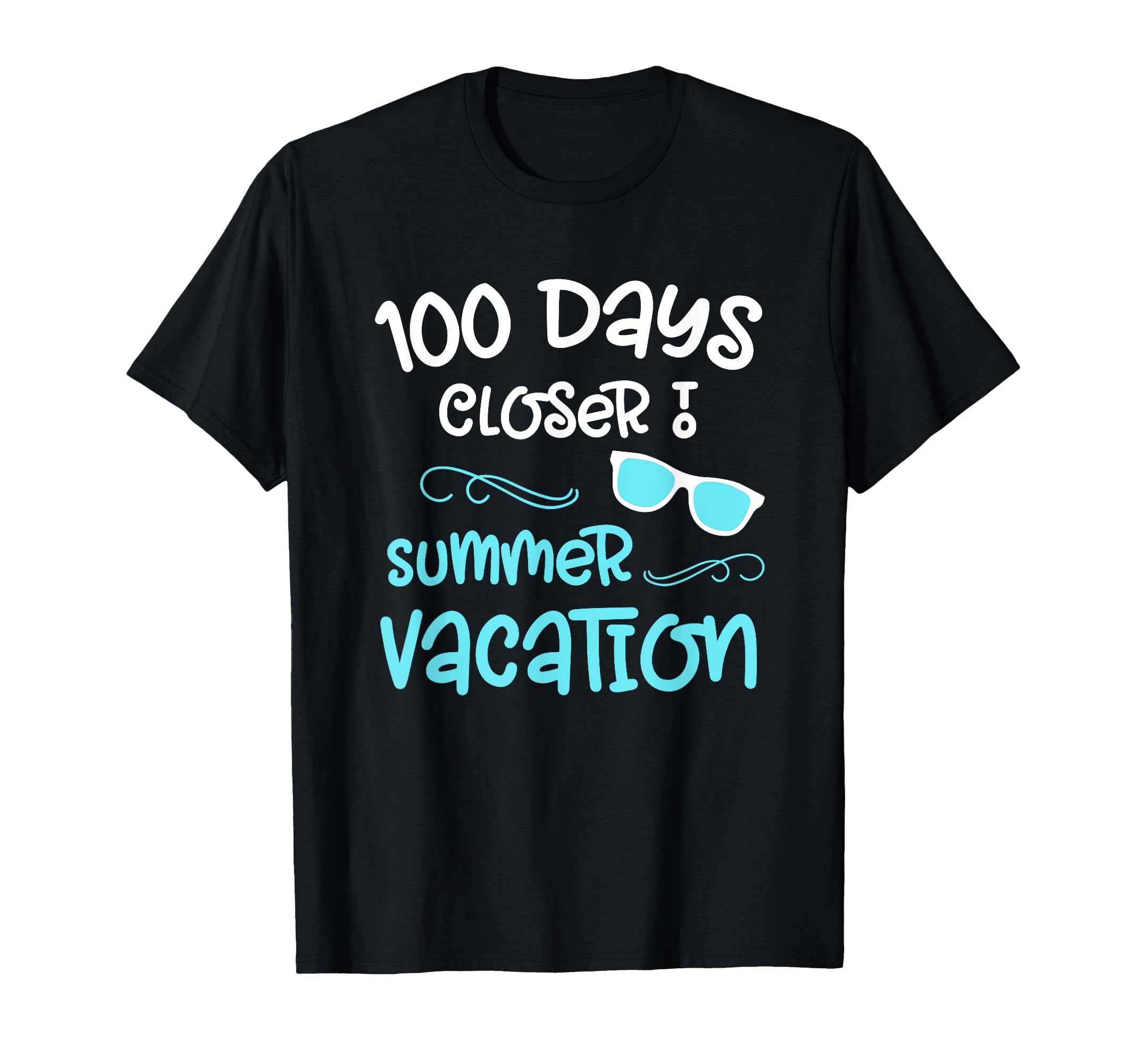 100 Days Closer To Summer Vacation Saying - Graphic with sunglasses and waves - Great for students and teachers to wear on the 100th day of school 100 Hundred Days of School Closer Summer Teacher Student Funny Quote Lightweight, Classic fit, Double-needle sleeve and bottom hem