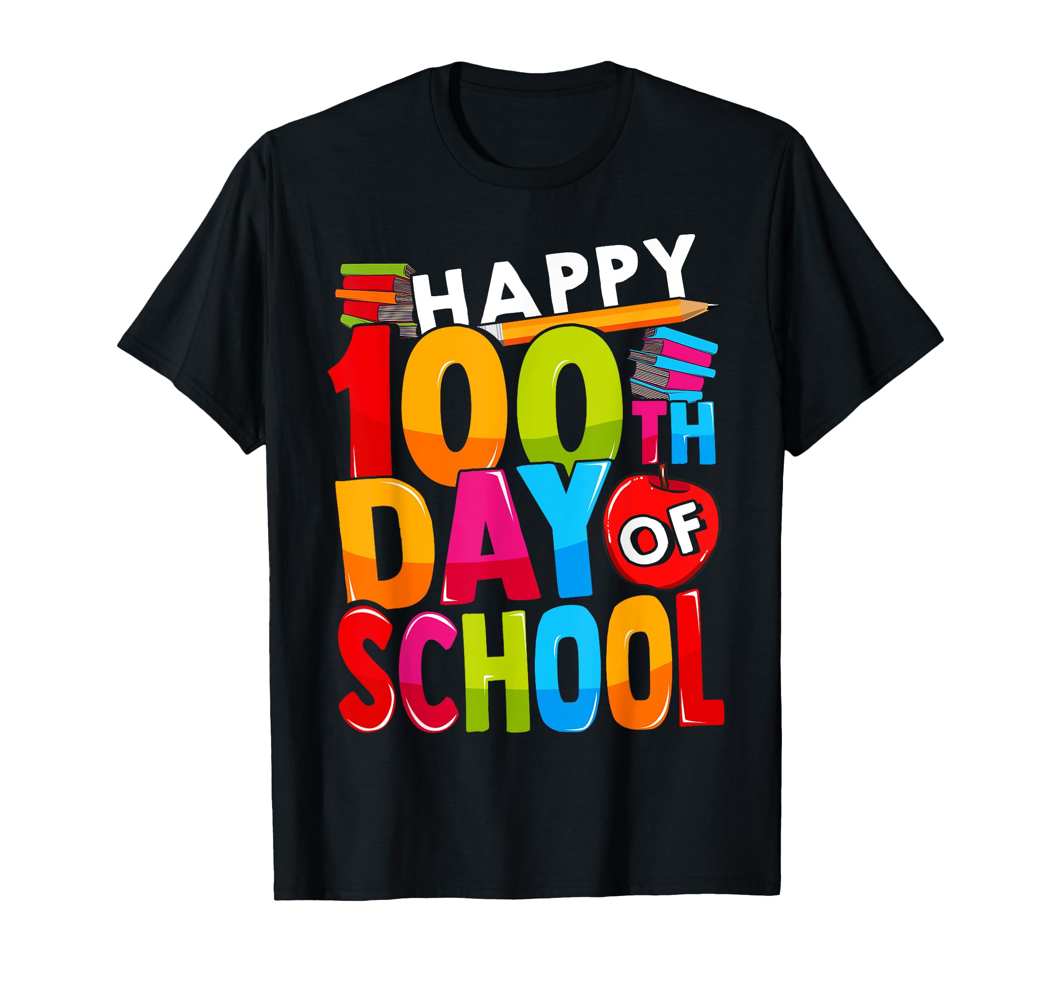 Happy 100 days of school design for teacher or kids. Happy 100th Day of School! Celebrate your child or student's first 100 days of school or kindergarten. Lightweight, Classic fit, Double-needle sleeve and bottom hem