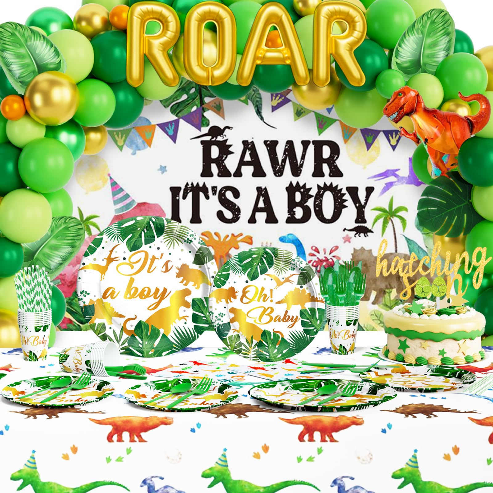 π¦ RAWR! ITβS A BABY β RAWR! Your boy is on the way. So, planning the perfect baby shower with a dinosaur theme is a fantastic way to celebrate a newborn! All the items in this kit completely throw you and your guest into an amazing mood. These decorations can be used to bless the happiest moms and dads-to-be in the world. π DINOSAUR BABY SHOWER DECORATIONS INCLUDES - 33 x 12ββ latex balloons