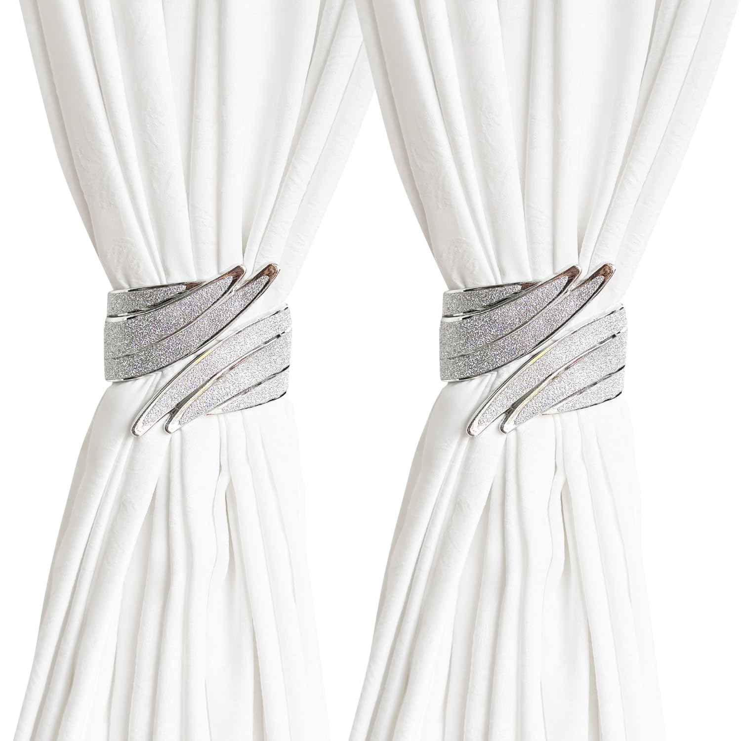 Self-Closing Convenience: Experience the ease of our automatically closing curtain tie backs, designed with a built-in spring for simple, effective use. Note: If your curtain's folded thickness is over 2.4 inches, the fastener may not fully close. Built to Last: Made from top-quality metal, these durable tie backs are strong, wear-resistant, and built to last, keeping your curtains stylishly in place. Flawless Finish: With a brilliant golden finish, these tie backs add a touch of glamour to any room. The smooth, even coating ensures they look great on any curtain material. Elegant Touch: Enhance your curtains with the elegant appeal of these gold curtain tie backs, adding a chic element to any decor. Versatile Style: Ideal for securing and beautifying curtains in your home, office, or commercial spaces like malls and restaurants. 2PCS Curtain Tiebacks Gold Vintage Spring Design Curtain Holdbacks Curtain Drapery Holdbacks Tie Back Hook for Home and Office Decoration