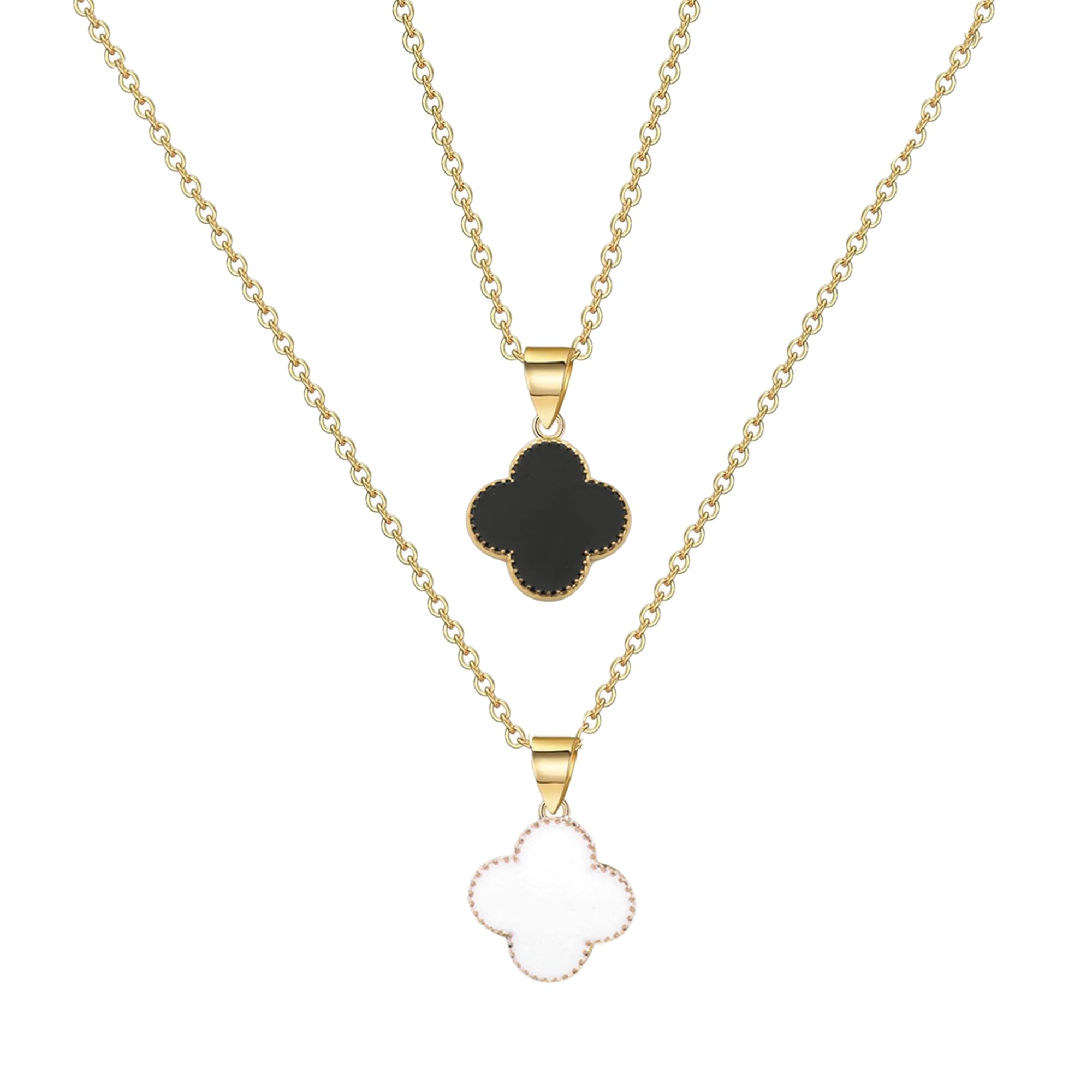 Premium 18K Gold Plated Craftsmanship Features a durable 18K gold-plated finish designed to resist tarnishing, paired with a delicate chain and intricately designed four-leaf clover pendant. Ideal for daily wear or special occasions(handmade jewelry) Elegant design and changing style: this clover necklace set consists of a black and a white set, you can wear according to your own wear, choose the right necklace to wear, you can also use this clover necklace set for good friends, partners to share, beautiful together Meaningful Symbol of Blessings Each leaf of the clover represents faith, hope, love, and luck. A timeless reminder of life’s greatest gifts: health, wealth, happiness, and lasting relationships Thoughtful Gift for Her Elegantly packaged in a sleek gift, this set is perfect for birthdays, anniversaries, weddings, Mother’s Day, or Valentine’s Day. Celebrate the special women in your life (wife, mother, girlfriend) with a cherished keepsake Versatile & Stylish for Every Occasion The minimalist clover pendant complements both casual and formal outfits. Choose from classic gold, sleek black, or silver-white chains to match her unique style 2-Piece 18K Gold Plated Four Leaf Clover Necklace Set
