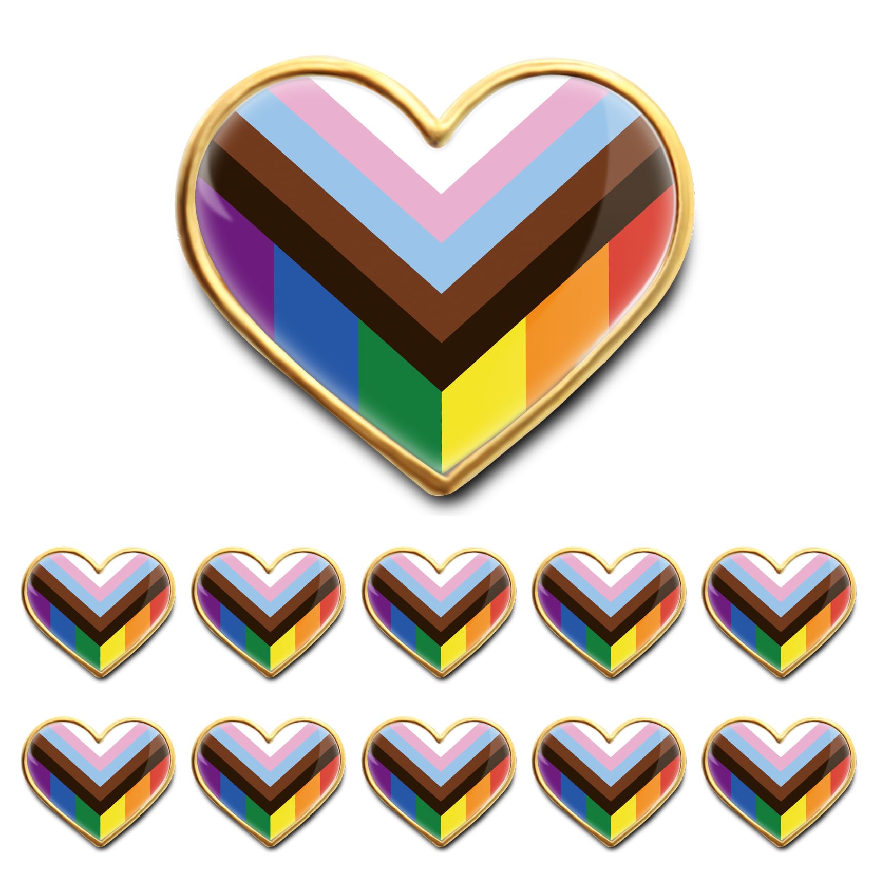 25/50/100/200Pcs Heart New Progress Inclusive Pride Lapel Pins Bulk- LGBTQ Transgender Rainbow Lesbian Bisexual Gay Progressive Pin Brooch Badge for