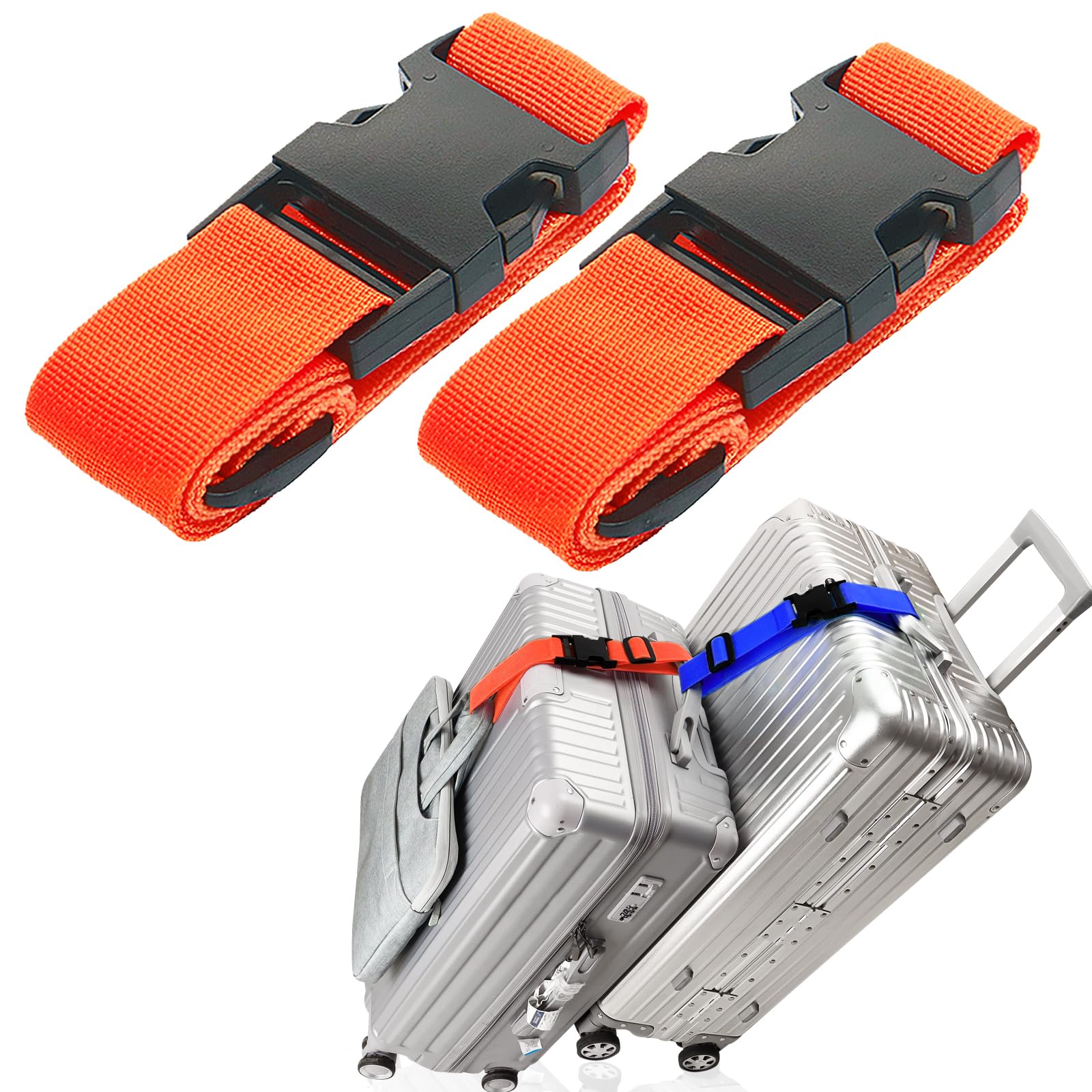 GOOD QUALITY MATERIALS - This lightweight luggage straps are made of heavy-duty plastics and polyester webbing material and buckle closure ensures security, the belt can be adjustable. Luggage accessories for travel use buckle straps design and easy to closure and easy to change length. It does not snap when bent inwards or outward QUICK RELEASES BUCKLE - Hassle-free buckle without code-lock or key-lock, you don't need to worry about the TSA screener will cut your straps. The buckle is adjustable, you can adjust the belt at any times according to the size of the suitcase. The double buckle design packs quickly and helps you save time EASILY ADJUSTS - The heavy-duty, quick-release buckle can be adjustable to suit your big or small luggage for length from 25 inch to 45 inch, the straps is 1.5inch (38mm) wide, the buckle is 1.7inch(47mm) wide. suitable for suitcase, luggage bag, backpack, etc or others occasions you needs to use LIGHT WEIGH - Adjustable Travel Suitcase Belt is takes up very little spacing, you can stows in bag or pocket when not in use. The luggage straps will be a best travel-mate of your luggage for a domestic or trip FUNCTION - You can take the luggage straps around your suitcase or bags or anything that you want. Adds a bag luggage straps belt, easily combining your bag, free you hand to a great extent Traveling can be stressful, especially when trying to manage multiple bags at once. The Add Bag Luggage Straps for Carry On Bag are the perfect solution for organizing your travel gear. These adjustable suitcase belt attachment accessories allow you to securely connect up to three pieces of luggage, making it easier to navigate through busy airports and train stations. With durability and convenience in mind, our straps simplify your journey and ensure that you have everything you need at your fingertips. Say goodbye to the hassle of juggling multiple bags and hello to effortless travel with our Add Bag Luggage Straps