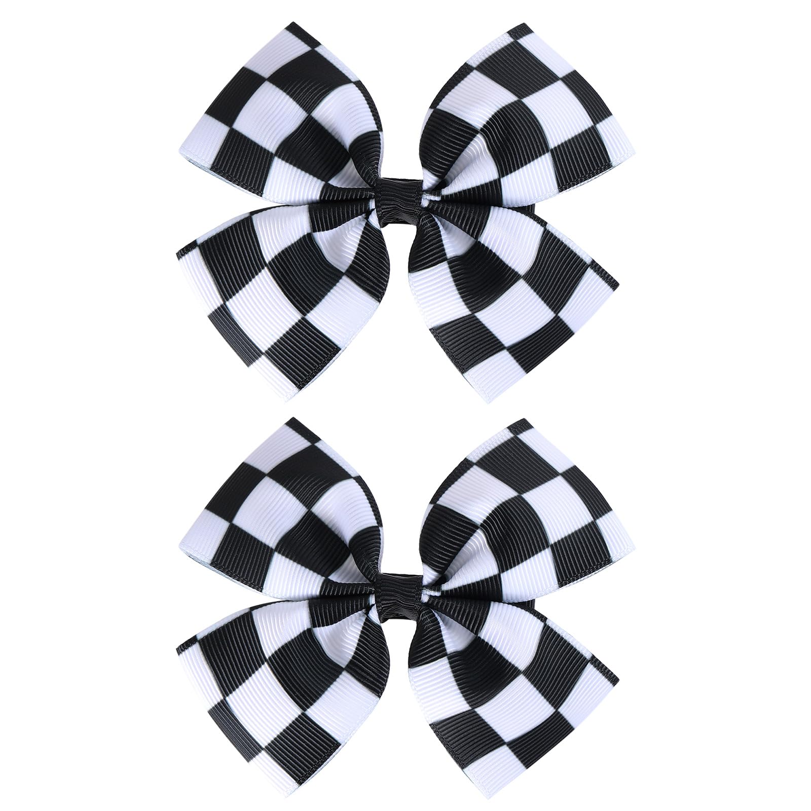 2 Pack Racing Checkered Flag Hair Bow Clips 4 Inch for Girls, Big Black White Buffalo Plaid Printed Grosgrain Ribbon Pigtail Bowknot Hair Barrettes Alligator Hair Pins Aesthetic Y2K Hair Accessories for Women Teens Toddlers Kids Racing Fans Car Theme Birthday Christmas DIY Crafts Wreath Party Favors Gift