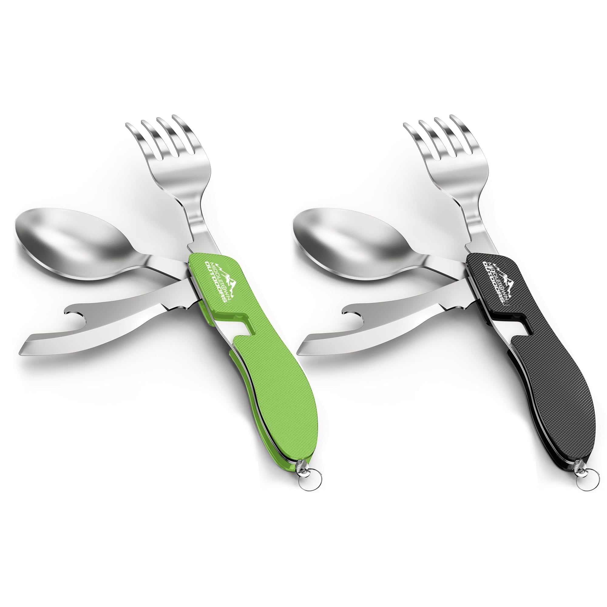 All-in-one convenience: Combines essential dining utensils like spoons, forks, and knives with the added utility of a bottle opener, catering to various needs during camping trips. Plus you get two in a pack. Pocket knife-style foldability: The convenient pocket knife-style foldability allows you to easily stash it in your backpack or pocket, adding a touch of convenience to your outdoor gear. Durable construction: Crafted from robust materials such as stainless steel or titanium, ensuring longevity and reliability in rugged outdoor environments. Versatile functionality: Apart from mealtime use, these utensil sets can serve multiple purposes, including food preparation, cutting tasks, and even minor repairs around the campsite. Space-saving design: The collapsible nature of the utensil pack allows for efficient storage, maximizing available space in your camping gear while ensuring you have all the essential tools readily accessible when needed. Gear up for your next outdoor adventure with our Outdoor Camping Multi-tool Utensils Set, the ultimate companion for your wilderness escapades. Crafted with precision and durability in mind, this set boasts a rugged stainless-steel construction, ensuring it can withstand the rigors of the great outdoors. Its compact and portable design makes it easy to carry wherever your journey takes you, whether it's hiking in the mountains or camping by the lake. The pocket knife-style foldability adds a touch of convenience, allowing you to easily stash it in your backpack or pocket. But versatility is where this set truly shines, featuring not just one, but two packs, each equipped with a spoon, fork, and knife. From slicing through hearty steaks to stirring up a savory stew, these utensils are up for any culinary challenge your campsite throws their way. With our Outdoor Camping Multi-tool Utensils Set, you'll never have to compromise on comfort, convenience, or quality during your outdoor adventures. So gear up, pack light, and get ready to make memories that will last a lifetime.