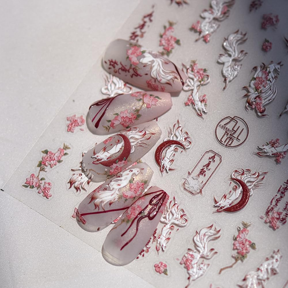 wash Painting Style-We have combined two sheets nine-tailed fox in ink painting and embossment designed stickers, good choices for personable nail art, highly artistic, which are especially suitable for the home use or salon manicure. Exquisite Design-They comes with exquisite and rich design, from the details to shows its difference and outstanding effect which design on the nail. (Used tweezers to lift and apply the decals, then added a top coat to secure. ) Advanced-These stickers stand up to close examination,no sense of cheapness,make it easy for you to design manicurist salon nails at home. Easy to DIY Nails Art-Not only for home use or salon nail art, it's a great decoration for every kind you can think of. It is fun to DIY nail art with your family or friends when family gathering and the holiday party good time. Package Contain-You will get 2 sheets white fox nail stickers(one sheet flat and one sheet embossed sticker). nail art sticker