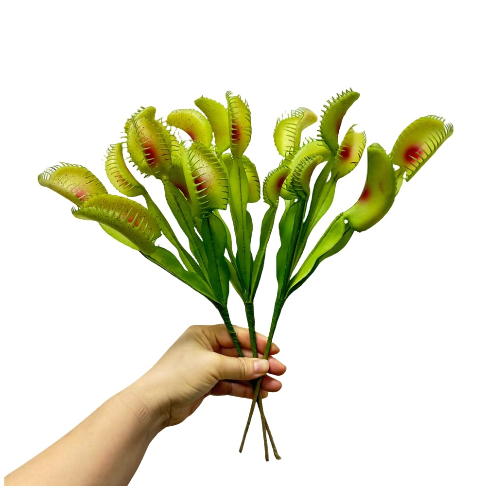 Package: Include 3 bunches artificial venus flytrap plants, Each bunch has 8 flower heads and total length is 13inch,each bunches of Artificial plants flowers There are 4 sizes of flower heads, approximately 1.25 inches, 1.75 inches, 2.25 inches, and 2.5 inches. Pack of 3 -Real Touch Artificial Artificial Flowers for Decoration in Wedding Flowers Bouquets, Flower Vases, Arrangements, & Centerpieces, always decorative your room, Ideal for placing in a vase, filling of centerpieces or home wedding decoration. No Maintainence: This venus flytrap plants don't need to worry about sunlight, watering, pruning, or other maintenanceļ¼artificial plant is a practical alternative to real grass and will stay alive every day. Recommended for Indoor and outdoor Use,Artificial grass plants are also great for everyday home garden decoration, weddings, memorial sites, birthdays, holidays, decorationDIY projects, and more. Versatile decor: the faux venus flytrap plants are designed to add a charming touch to your front porch, walkway, kitchen, windowsill, living room, dining table, bedroom,shop window decoration, patio and garden fence. Artificial succulent venus flytrap Perfect for home, festive party decoration, also can be used as wedding bridal bouquet, living room, kitchen, patio, shop window decoration.