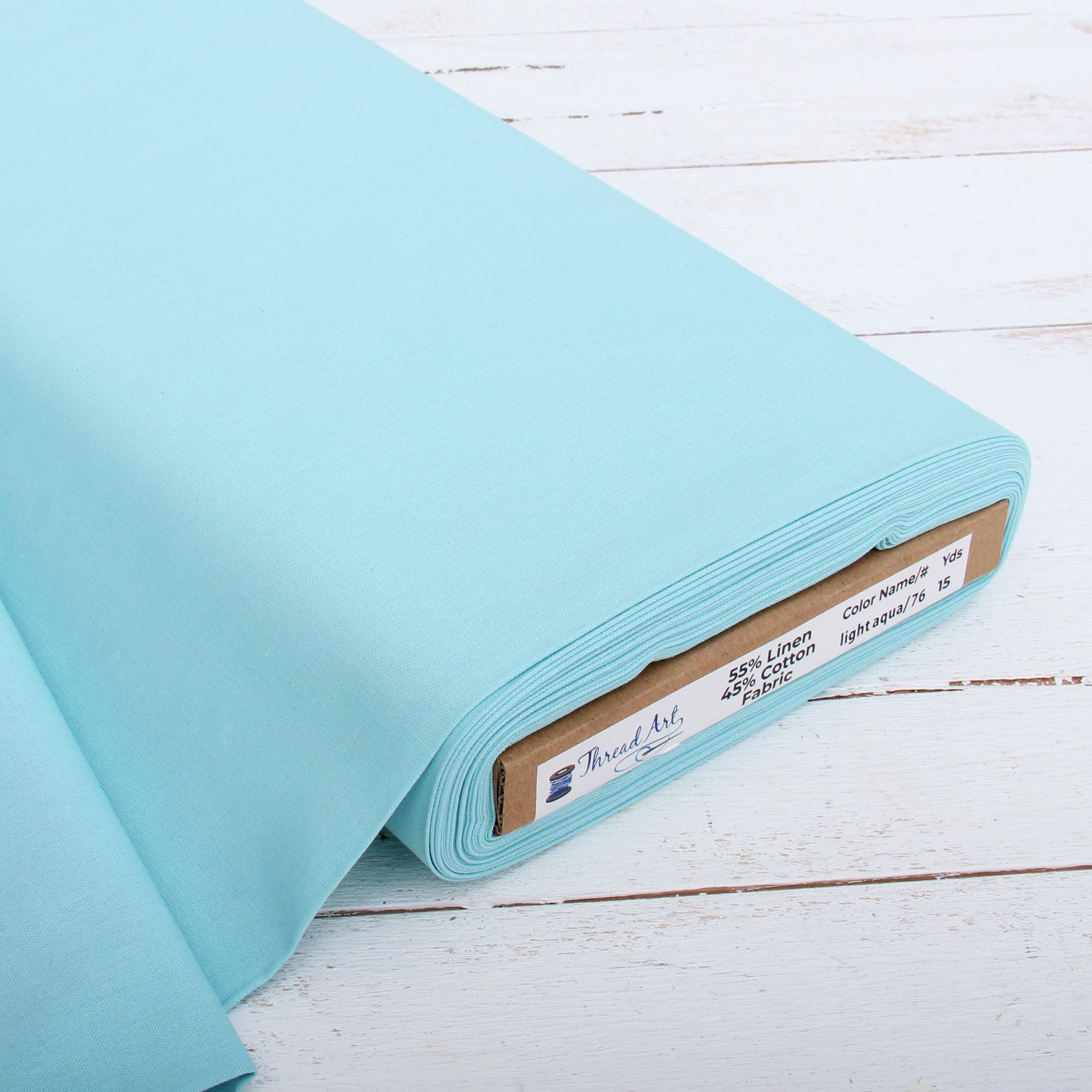 3 Yard Cut of Threadart Linen Fabric - Premium Cotton Linen Fabric for Embroidery, Cross Stitch, Apparel, Canvas, Home Décor- 55" Width - Light Aqua