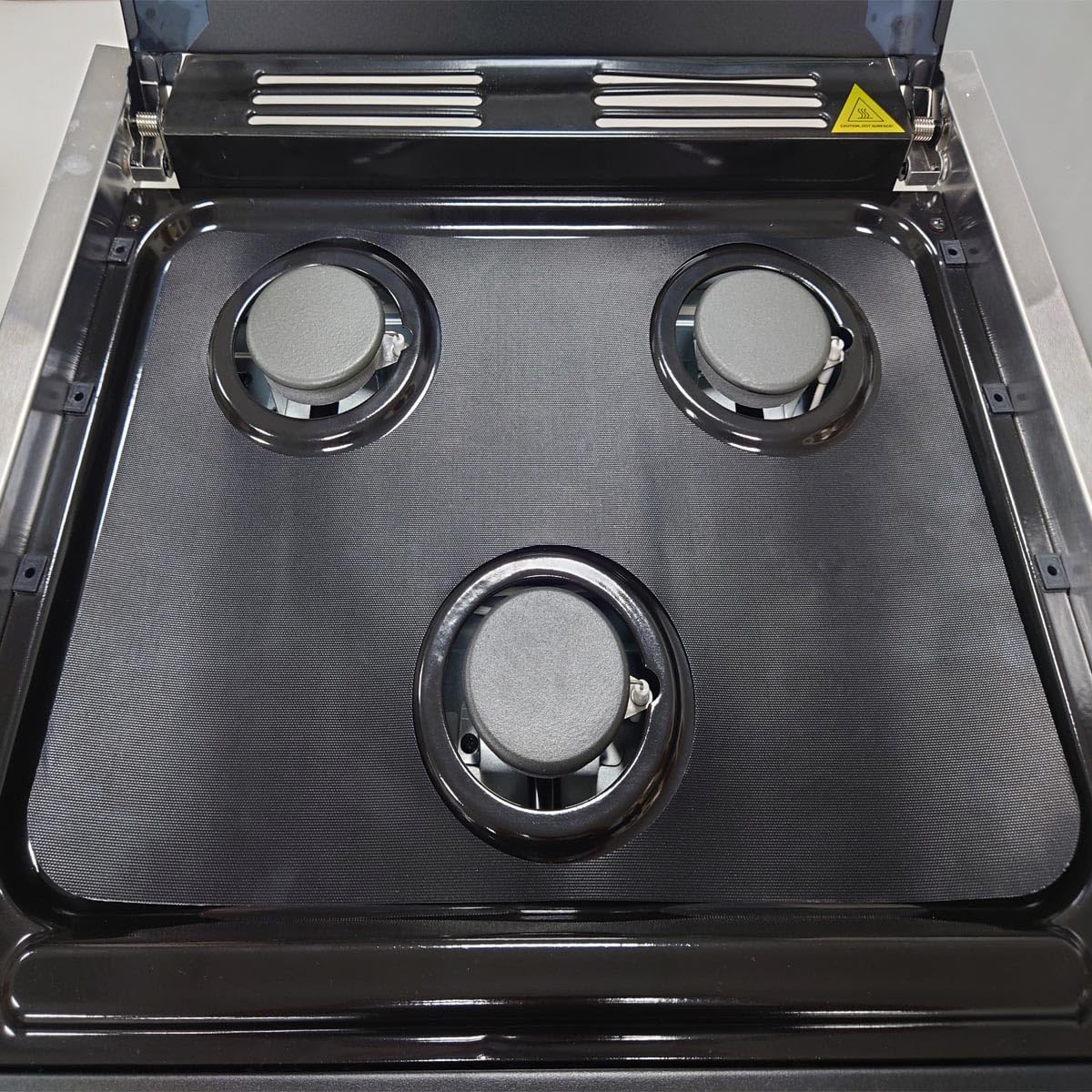 Compatible With Furrion magic chef 3 Burner Circle:MODEL #F1S21L03A, F1S21L02A ;Greystone CF-RV17B CF-RV17, CF-RV17B, CF-RV17BB, CF-RV17-D,CF-RV17-D1,CF-RV21,CF-RV21B,CF-RV21BB,CF-RV21-D,CF-RV21-D1; Magic Chef: MCFR21TTB, MCFR17TTB, RP-RANGE-17BL; Rec Pro: RP-RANGE-17SS,RP-RANGE-21BL,RP-RANGE-21SS,RP-CT-173B-BL,RP-CT.173B-SS,RP-CT-122B-BL. KEEP YOUR STOVE TOP CLEAN: Protect your stove against those annoying spills on your stove top. Our stove liners are built to keep your cooktop in pristine condition and protect it against spills, drips, gunk and food getting stuck on your stove top Easy To Use & Clean:Dishwasher safe and Easy to wipe clean with soap and water SUPERIOR QUALITY: Withstands up to 500°F and is 100% BPA Free and PFOA Free. Each stove top protector liner is using teflon coating, dip-coated with fiberglass fabric. Each pack comes with 2 stove liners PERFECT FIT:Customized Size,Non-flammable,Non-stick We know how it goes. You get a new RV stove or cooktop, and before you know it, it's all scratched and scuffed up! And then there are the stains and messes from cooking. We've all been there! Thankfully, this RV Stove Top & Oven Protector can make all those problems disappear! This RV Stove Top & Oven Protector is here to help you keep your RV gas cooktop stove in pristine condition! It's pre-cut and perfectly fits Magic chef, Furrion, & Greystone 3-burner cooktops. The stove protector is made of super tough Teflon-coated fibreglass material, so it's built to last. This non-flammable material gives the protector outstanding durability and a heat resistance of up to 550 degrees, so you can rest assured that it will keep your stove and oven clean and tidy. This means that it will protect your stove from spills, splatters, and drips that can occur as you cook. It will also protect your hardware from damage, such as stains, scuffs, scratches, and burnt messes. The protector is BPA/PFOA free, so you can rest assured that it's safe for you and your loved ones. And what about when the protector gets dirty? No need to worry then, either! The stove protector is reusable, so you never need to throw it away for a new one. It is also non-stick, which makes the protector super easy to clean. All you need is some water and normal dish soap, and you can easily wipe away any messes on the protector. You can even toss it in the dishwasher if you don’t want to wash it by hand! Keep your RV stove looking shiny, clean, and brand new with the help of an RV Stove Top & Oven Protector from Qfrenetall! Our user-friendly website makes ordering yours a breeze, or chat with our helpful Customer Care Team members if you need further assistance.