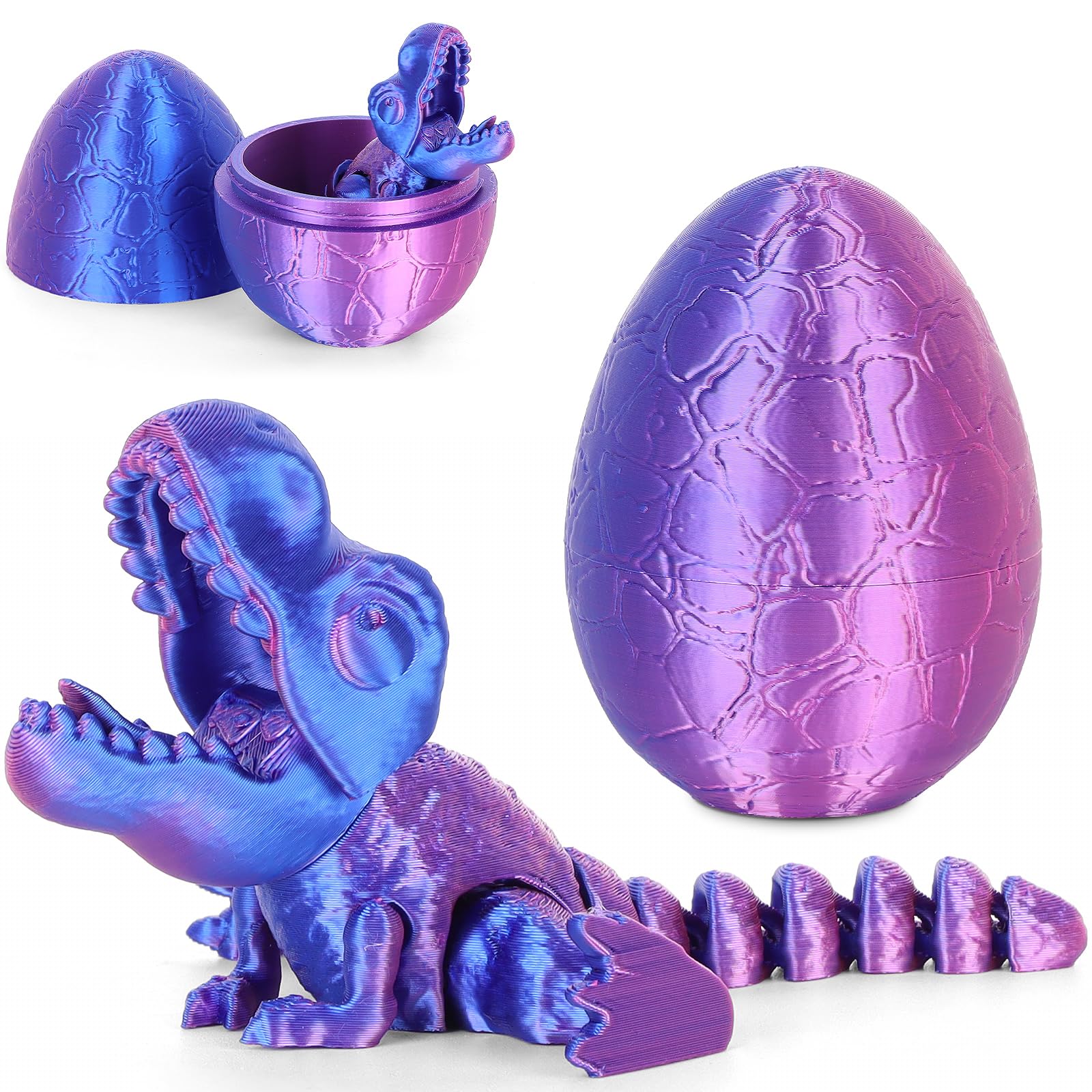 【3D Printed Dragon】3D Printed Toys & Dinosaur Egg- dragon eggs with dragon inside-With a special articulated design, the 3D printed Dinosaur is full-body movable, allowing for flexible posing and positioning. The Dinosaur egg is threaded for easy opening and closing,and also nice to hold other 3d printed animals. 【Professional Printing】3D Dragon Dinosaur Egg- We are a team focused on the 3d printing, each Dinosaur egg is printed using the finest ECO materials PLA.You can even see textured layers on top of the material. This new upgraded Dinosaur of ours has smooth edges, safe materials.So feel free to dare your child to play with them! 【Great Gift】These dinosaur egg dragon eggs make excellent presents for kids, teenagers, and adults alike. 3D Printed Fidget Toys - Ideal for Easter basket fillers, party favors, and stocking stuffers, these dragon eggs offer both entertainment and educational value, inspiring creativity and imagination in children. 【Pretend Play Dinosaurs Eggs Toys for Kids】This articulated Dinosaurs fidget toy action figure from ancient dinosaur fossils to today's TV movie Jurassic Park, dinosaur legends are everywhere. Available in various colors, each symbolizing unique meanings and strengths, these 3d printed dragon Dinosaurs egg figurines also serve as fantastic stress-relief toys. These cute dinosaur eggs and toys can help your child learn about dinosaurs and also play house games with dinosaur eggsimagination. 【Widely Applied】3D printed dinosaur figurines can be used as decorations for restaurants, libraries, art galleries, offices, bedrooms, homes, desks and other occasions, school teaching enlightenment, and are the perfect decorations for any fantasy collector fan. 3D Printed Dragon Eggs with Dragon Inside 【Professional Printing】3D Dragon Dinosaur Egg- We are a team focused on the 3d printing, each Dinosaur egg is printed using the finest ECO materials PLA.You can even see textured layers on top of the material. This new upgraded Dinosaur of ours has smooth edges, safe materials.So feel free to dare your child to play with them!
