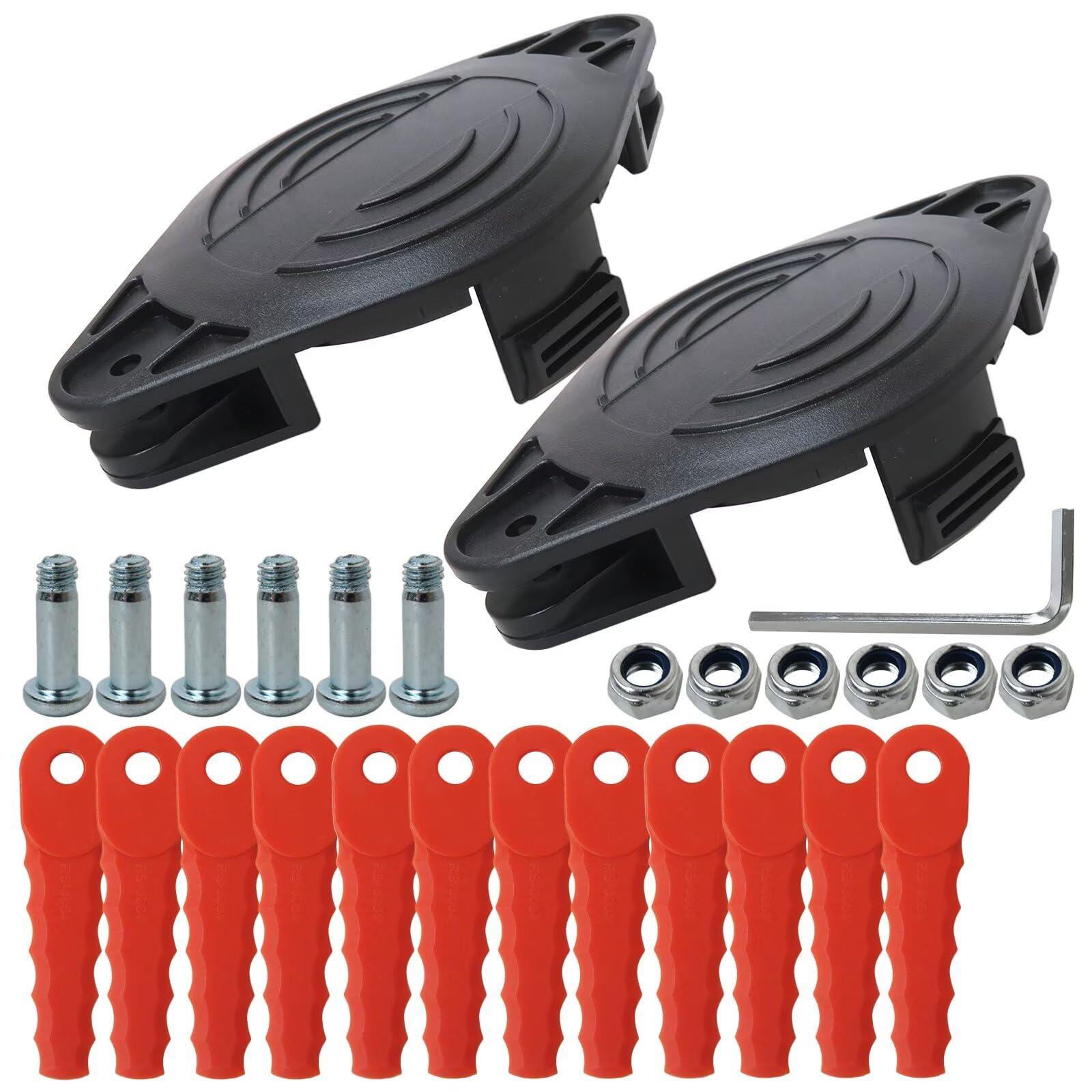 【Compatible Models】AF-100 polycarbonate blades trimmer head compatible with black decker string trimmer: GH900, GH600, LSTE525, LST300, BESTA510, LCC340C, LST522, ST8600, ST7700, ST7000, ST6600, NST2118, NST2018, NST1118, MTE912, MTC220, LSTE525BT, LSTE523, LST420, LST400, LST220, LST201, LST140C, LST136W, LST136B, LST136, LCC222, LCC221, LCC140, GH912, GH610, GH500, GH400, CST2000, CST1200, CST1000, BESTE620, BESTA512 【New Upgrade】12 Pack replacement blades are made of polycarbonate material for extra sharpness. Serrated Edges are ideal for thicker grasses that your strings may not be able to handle 【Easy Installation】The upgraded version of the replacement blade reduces the cumbersome installation process and is easy to install.Trimmer Head fixed dual blades don't worry about getting stuck during installation 【Efficient Cutting】Use centrifugal force and aerodynamics to reduce resistance and realize rapid cutting. High-quality materials make you safer and has good abrasion resistance, to ensure it can serve you for a long time 【Package Includes】Polycarbonate replacement head * 2, replacement blades * 12 pack, Screw * 6 pack, Wrench * 1