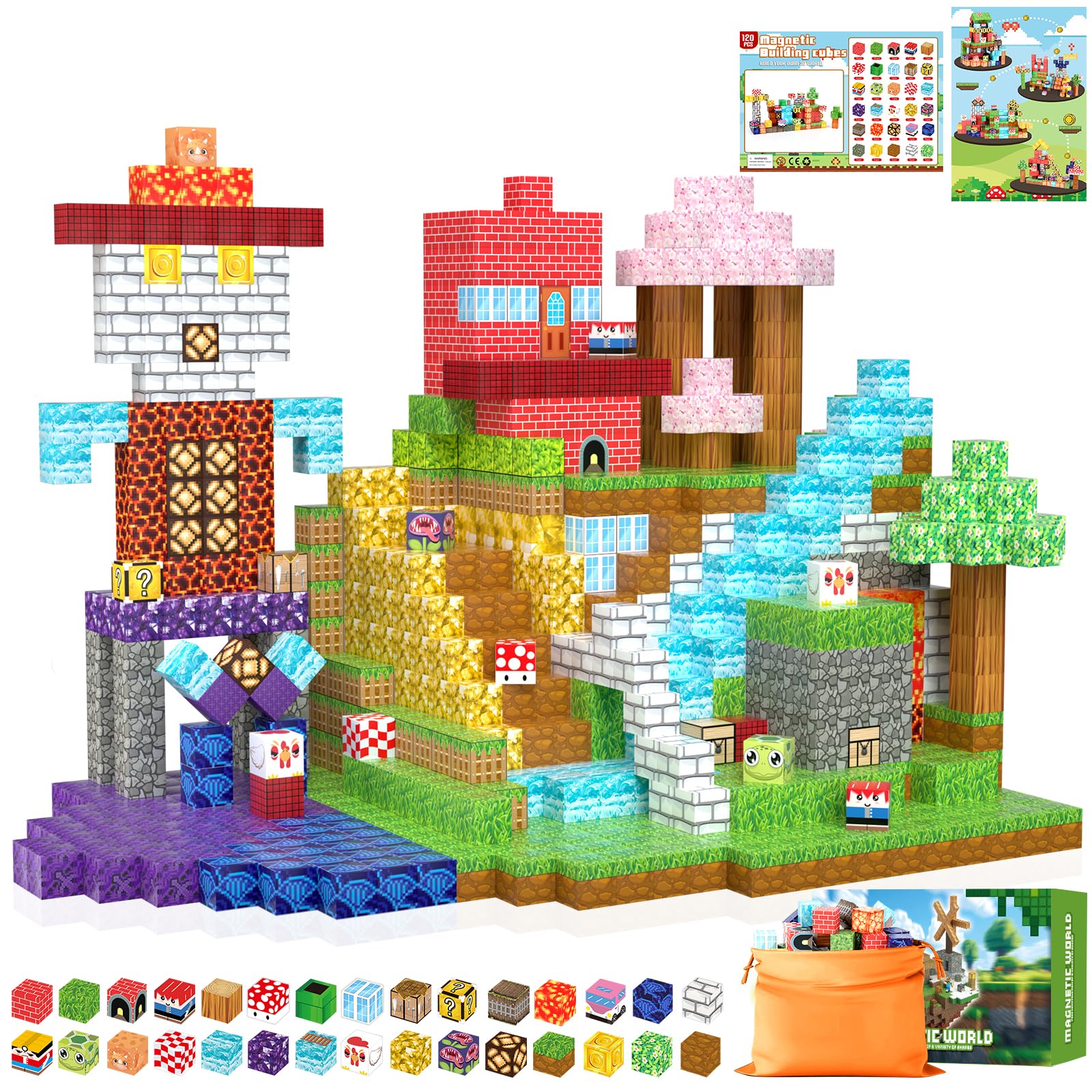 【120PCS Magnetic Blocks】AKALOL magnetic blocks magnetic cube kits are designed with a 1-inch size,compatible with popular market brands, allowing you to expand your collection by adding more building blocks. The more magnets you have, the more creativity you can achieve! While most magnetic block sets contain only 6 magnets, AKALOL blocks are designed with 8 magnets, making them stronger, more stable, and flexible. Sealed edges and durable structure prevent magnets from breaking or being swallowed.Magnet blocks travel set with package bag. 【Perfect Montessori Toy For Kids 】 120pcs magnet world set offers a wealth of patterns. They can even build a forest parking lot to park their toy cars. Unleash your kids' creativity and enjoy hours of role-play fun!The magnetic cubes set features a variety of patterns, including various basic Mushrooms, carnivores, coins, dinosaurs, turtles, absentee, ore, magma, grass, mine lights, orbit and more magnetic blocks.Magnetic toys can be stacked on a tabletop or built on fridge,magnetic whiteboard. 【STEM Learning Building Blocks】 Including 120 magnetic cubes in 31 colors. Come with an idea manual to guide and inspire them to explore the magnetic dream world. Witness the excitement as they realize they've built creations identical to those in the manual, igniting a sense of accomplishment and pride. It is a fun solo activity or with friends and offers an important alternative to screen time.Let the fun begin! 【Sensory Education Toys for Toddlers】They attract toddlers' attention with their bell-like rustling sounds. STEM-approved magnetic blocks inspire hours of instruction-free playtime while helping children develop math, science, spatial, and tactile skillsThis magnetic building cubes will not collapse easily during construction, and can be freely combined to build anything they imagine, which promotes the growth of children's creativity. 【PERFECT STEM GIFT-GIVING GIFTS】A perfect gift for kids of all ages, from toddlers to school-age kids, especially for young gamers who enjoy exploring and building in virtual worlds.These magnetic tiles is that it keeps kids of all ages busy for years to come.Suitable for group activities and classroom use, including preschool and kindergarten. An ideal outdoor toys for 3+ years old boys & girls. Perfect for birthdays, Christmas, Children's day, STEM, and school activities. Unleash your child's imagination with the AKALOL Magnetic Blocks - 120PCS Magnet Blocks Set! This vibrant and exciting magnetic building toy set allows kids aged 3+ to embark on thrilling adventures as they create their own unique game worlds. Featuring a variety of patterns and environments, from lush forests to fiery lava rivers, these magnetic blocks are designed for endless creative possibilities. With enhanced durability and compatibility with other popular brands, AKALOL offers a safe and engaging way for children to explore STEM concepts while having fun. Perfect for birthdays, holidays, or just because, this innovative toy is an ideal gift for both boys and girls alike!magnetic blocks for kids ages 4-8 blocks for toddlers 2-4 years magnetic blocks for kids ages 4-8 blocks for toddlers 2-4 years building blocks for toddlers 3-5 blocks for toddlers 1-3