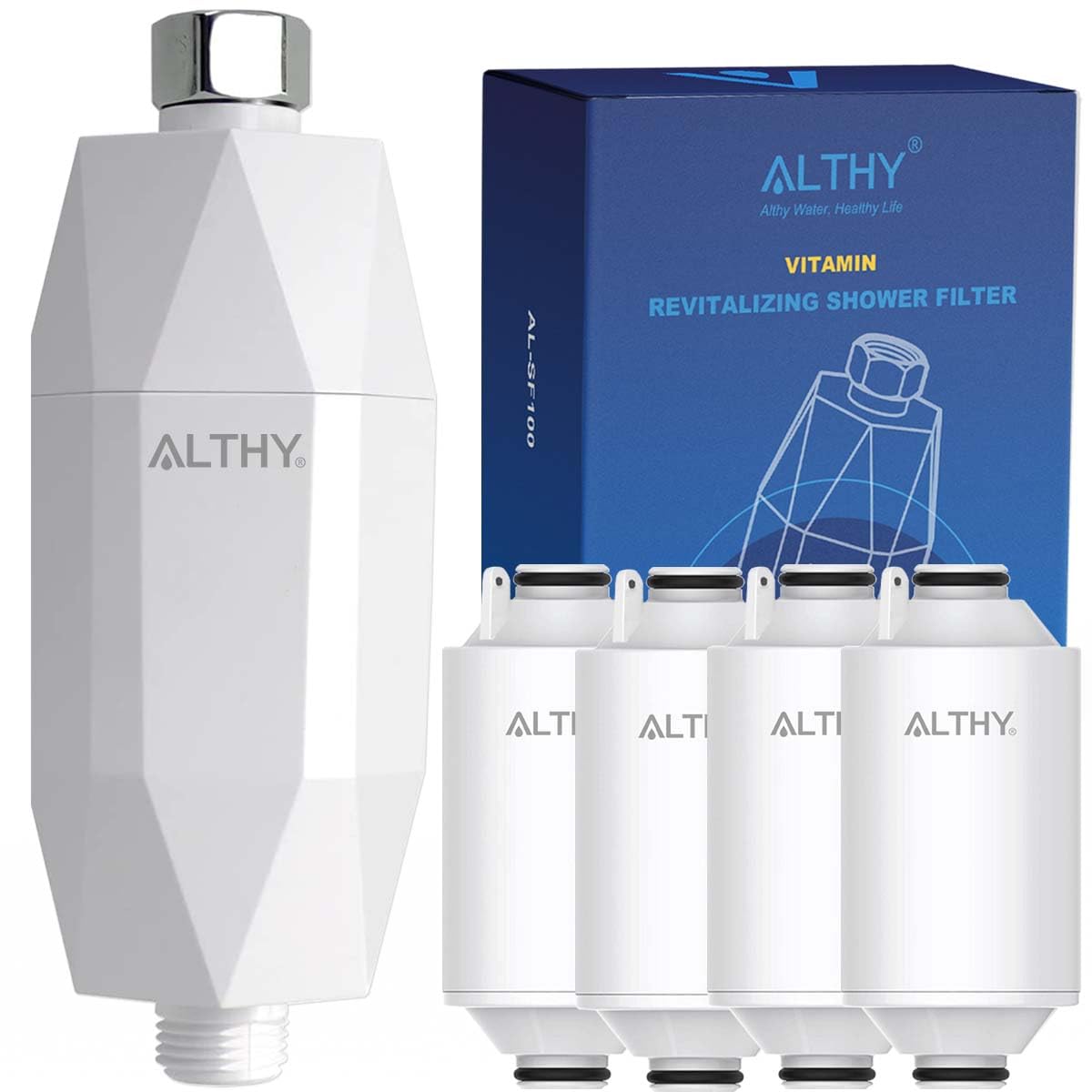 IMMEDIATELY BEGINS REJUVENATING SKIN, HAIR & NAILS: HARD, chlorinated, chemical ridden water causing itchy skin, flaky dandruff, eczema, bone-dry hair and brittle nails? Let ALTHY SF100 deliver MAXIMUM WATER FILTRATION to NEUTRALIZE ODORS, balance out your PH levels and INFUSE BENEFICIAL VITAMIN C into your skin, nails and hair from the first time you turn it on! REVITALIZING YOUR BODY: Our shower filter remove the odor in the waterand effectively removes harmful substances from your shower, helps hair loss, dry scalp, itchy skin and dandruff. ACTUALLY WORKS - EXPERIENCE THE CLEANEST CLEAN: MOST filters for showers eliminate some chemicals for a short time, but do nothing to restore the damage done to your hair, nails and skin. Our ADVANCED MULTI-STAGE HEALTH FILTER reduces Chlorine, pesticides, pharmaceuticals, dirt, odors, helps control scale buildup plus restores what your hard, chemical filled water did to your hair, skin and nails! 16 MONTHS LONG LIFE REPLACEABLE FILTER KIT : WHAT is your HEALTH worth? What about LOOKING YOUR BEST? If you’re a savvy shopper, you’ve done your research so you know that most shower filter cartridge options for well or city water only last 2 months Actually(inconsistent with propaganda), then cost a pretty penny to replace. 4 pieces ALTHY showerhead FILTER replacements last 16 months cost less - for CLEANER, CLEARER, BEAUTIFYING SHOWER TIME for LESS. “IT FITS G1/2" !” - EASIEST NO-TOOL INSTALL: IF YOU can snap together Legos, you can easily remove your old shower filter or chlorine filter and replace it with this in minutes! Because we believe life should be EASY, IT WORKS with ALL SHOWER TYPES – including fixed, rain and handheld. No tools required ALTHY Vitamin C Revitalizing Shower Water Filter - Reduces Chlorine Heavy Metal - Improves Dry Itchy Skin, Hair Dandruff, Eczema