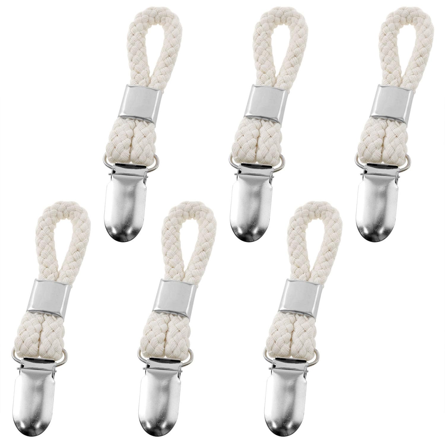 Material: Towel clips are made of woven cotton rope and compact iron clamps, light but strong, even heavy wet towels are not easy to slip off. Easy to carry: Bath towel with hanging loop has small size and light weight, easy to carry, whether it is used at home or out traveling, camping, etc.,which can be easily carried and used. Woven cotton ring kitchen towel clip application is very simple and fast, no installation hole, with good carrying capacity, very convenient to carry and store, which is a practical small item in our life. The woven dish towel holder is mainly used for hanging towels, bath towels, handles, kitchen tools or other cooking tools, etc., which is a good element to save space in the home. Align the opening of the bath towel with the hanging ring with the edge of the towel, squeeze the handle to make the clip bite, and then fix the towel on the clothesline, drying rack and other positions for drying, or clip and fix other light fabrics according to the scene. Product Description: