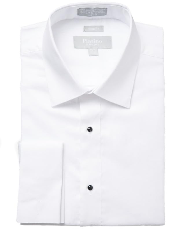 This slim fit shirt features french cuffs and a versatile spread-lay down collar. The included silk knot cufflinks offer a stylish complement, though they can easily be swapped out for any preferred pair. Designed with a button and stud front closure, it boasts a textured pattern that adds a refined touch to the overall look. Perfect for formal occasions or an elevated everyday style. This is a slim fit shirt: Slim fit shirts hug the body all over much tighter and gives a tighter, slimmer, modern look. If you are not used to slim fit items, please keep this in mind when purchasing. Made from high-quality, breathable 100% cotton, this shirt is designed to keep you cool and comfortable all day long. Expertly tailored slim fit: Crafted for a modern, streamlined silhouette, perfect for a range of formal occasions such as weddings, proms, black-tie events, galas, and other special celebrations. Season: Year-round use featuring exquisite, imported tailoring with a sleek, modern design and no chest pocket for a clean, polished look. Adam Baker knows men's fashion-and so will you, when you're wearing this elegant slim fit spread collar french cuff tuxedo dress shirt, something every man needs in his wardrobe. This shirt is made of 100% cotton soft fabric, ensures that you feel as good as you look every time you put it on! This shirt comes in a great range of sizes.