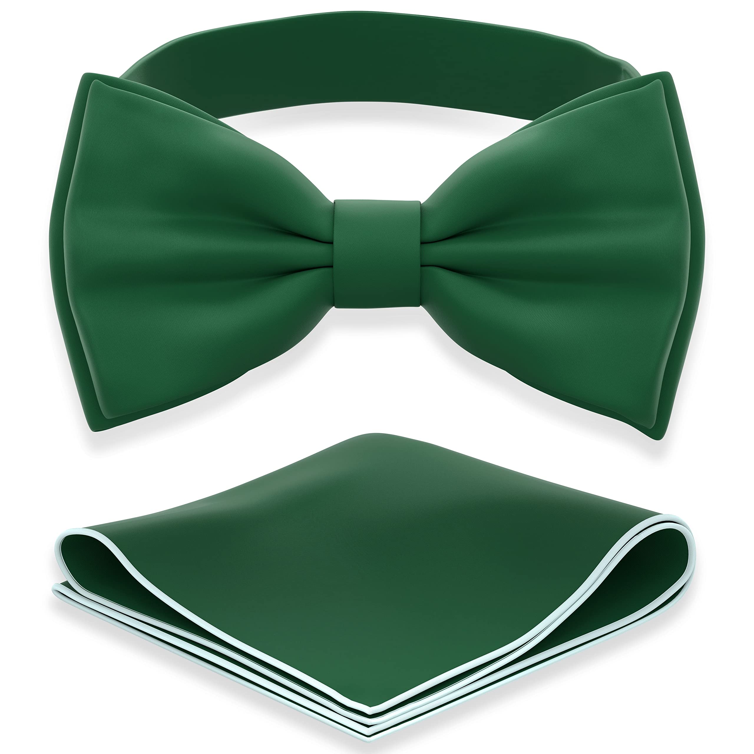 Sizing: The bow of the Large size bow tie is 4 ¾" x 2 ⅓". The strap length is adjustable from 11" to 22". The Large size fits teens, youths, and adults. The bow of the Medium size bow tie is 3 ⅞" x 1 ⅞". The strap length is adjustable from 9" to 19". The Medium size fits infants, toddlers, and school-age children. Color & Materials: The bow tie is made of high-quality materials; it's 100% polyester composition and has a tiny glossy glint on it. The Black color has various names. If you are looking for onyx, coal, midnight, ink, or obsidian, this shade will be a perfect match. Colors are designed to go with any tuxedo, jacket, outfit, or uniform and with shirts. Uniqueness: Premium 4-layer bow ties are formed to last and feel comfortable. Bow ties are designed with great center knot details and easy-to-use hooks. Easily adjustable sturdy pre-tied bow tie with rust-resistant hardware. Fine quality from the People's Republic of China and made to last all weathers, designed in the USA. Versatility: A stylish unisex bowtie fits perfectly on anyone. You're guaranteed to stand out wearing a high-quality bow tie that will never lose its shape. Huge range from the subtle to the vivacious, for all occasions. For any occasion: Bow ties made to be worn and worn again. This is a perfect bowtie that can match any of your styles. Dress up for a holiday party, cosplay, graduation, wedding celebration, or a special gala. The bow tie goes with a matched handkerchief.