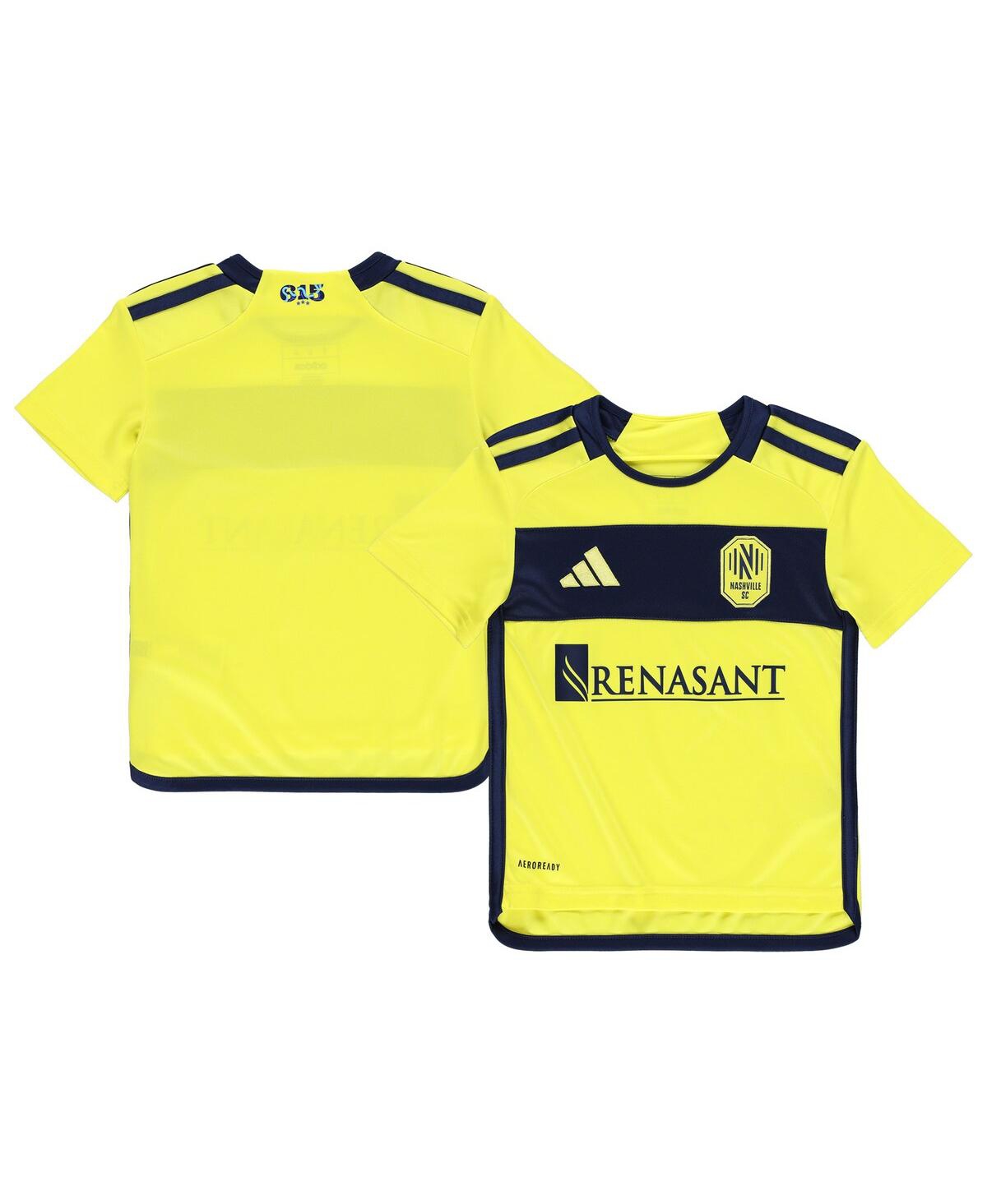 Constructed with Aeroready technology, this Nashville Sc jersey from adidas is built to provide your young one an on-pitch look and feel. The Nashville Sc graphics are sure to get them onboard with the family fandom so you two can enjoy the game together in style. They'll be on the pitch practicing their game with confidence in this jersey.