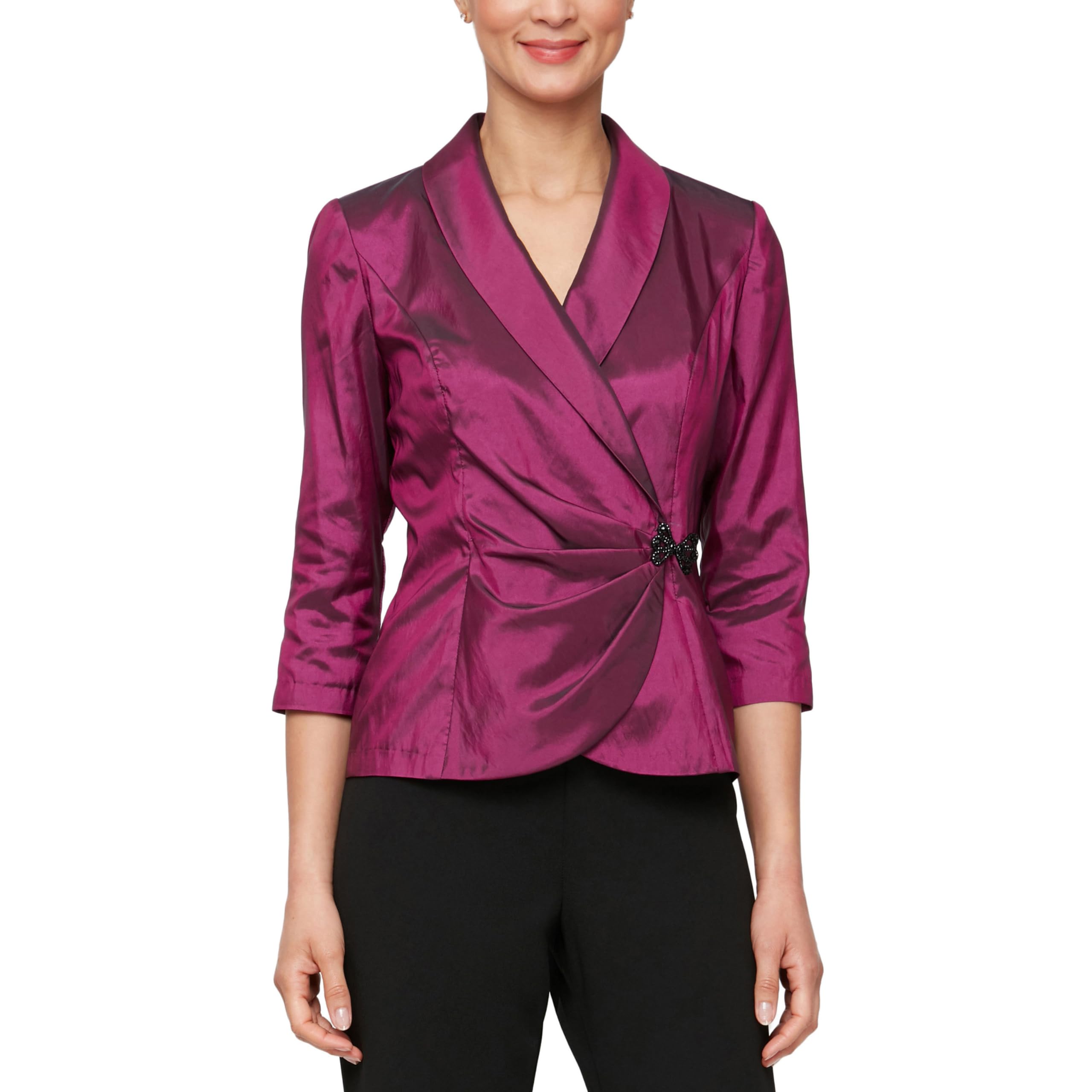 Classic Femininity: Look no further for a blouse that is modern yet classic at the same time, exuding feminity with every wear! Alluring Fabric: Crafted from soft and lightweight taffeta, this blouse ensures all-over stunning appea with the perfect amount of shine, capturing attention with its captivating and refined fabric. Comfortable All Night: With a collared surplice neckline and decorative button closure, this top ensures a comfortable fit that allows you to dance the night away at any wedding or special occasion. Elegance in Pairing: Create an elegant look that commands attention by pairing this blouse with any of our Alex Evenings pants or skirts. The perfect combination for a stylish and sophisticated ensemble. Sizes for Every Woman: At Alex Evenings, we embrace the beauty of every woman. Our inclusive sizing, from Petite to Regular, and Plus sizes, ensures that our dresses are designed to complement various body types. Find your perfect fit for any special occasion.