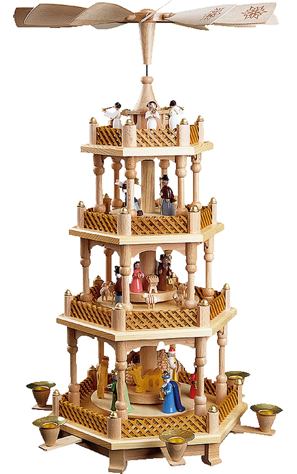 Alexander Taron Importer 16723 Richard Glaesser Pyramid-4 Tiers-Nativity Scene, Wise Men, Shepherds and Angels-21 H W x 12.5" D, 21" x 12.5" x 12.5",