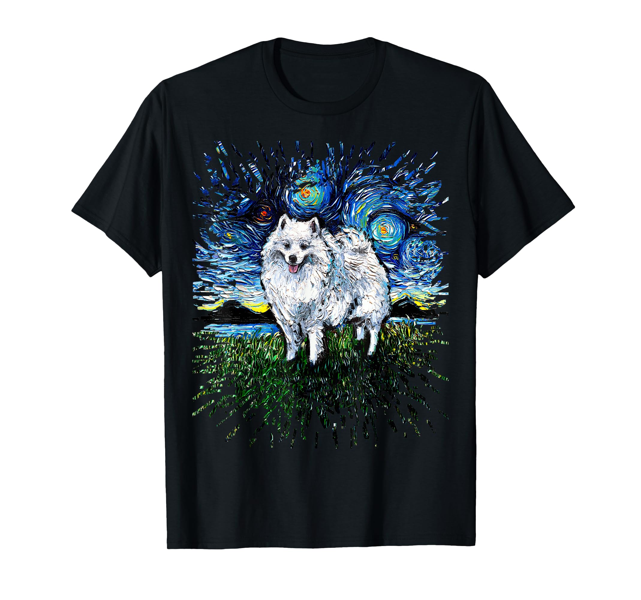 American Eskimo Japanese Spitz Starry Night Dog Art by Aja Men Women Girls Kids T-Shirt