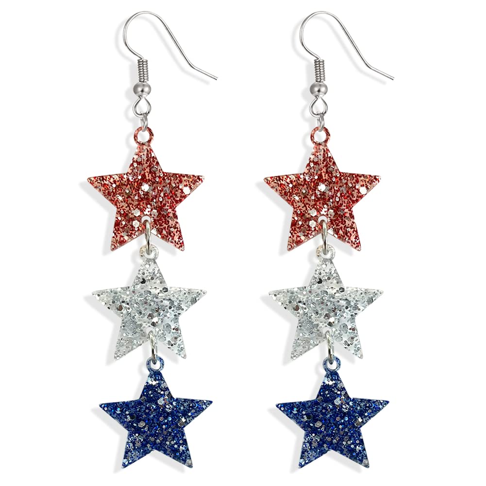 Absolutely loved the new collection of sparkly Americana Patriotic earrings. Simple,cute and very different USA words,stars,heart designs,vibrant shiny Colors,individually packaged which was nice for gift giving. light, do not hurt your ears and are comfortable to wear. The glitter red, white and blue design makes them easy to match with most summer party outfits,Perfect addition to summer!