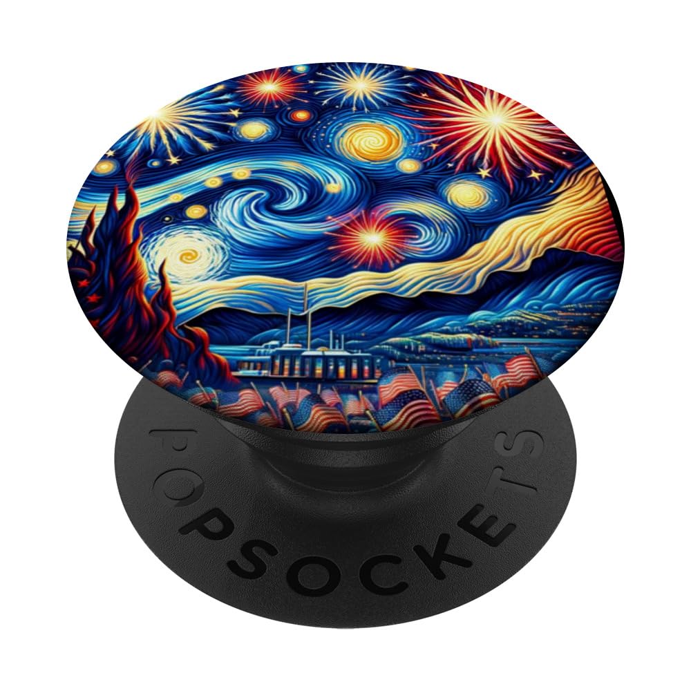 Matching Van Gogh Starry Night 4th Of July Starry Night. This July 4th celebrate Independence Day Van Gogh Starry Night Fireworks. American Flag July 4th Van Gogh Starry Night Fireworks. Cool Patriotic 4th of July Fine Art USA Fireworks Men Women Kids Famous Art Artist Van Gogh Painting Starry Night. Starry Night design for boys & girls. For Art Teachers, kindergarten, school students, Kids & future artists. Starry Night Van Gogh. Cool Patriotic 4th of July Fine Art USA Fireworks. American Flag. Men Kid Adhesive backing attaches the PopGrip to your case or device. Will not stick to silicone, leather, waterproof, or highly textured cases. Works best with smooth, hard, plastic cases. Not compatible with wireless charging Printed top is swappable with other compatible PopGrip models. Just press flat, turn 90 degrees until you hear a click and remove to swap.
