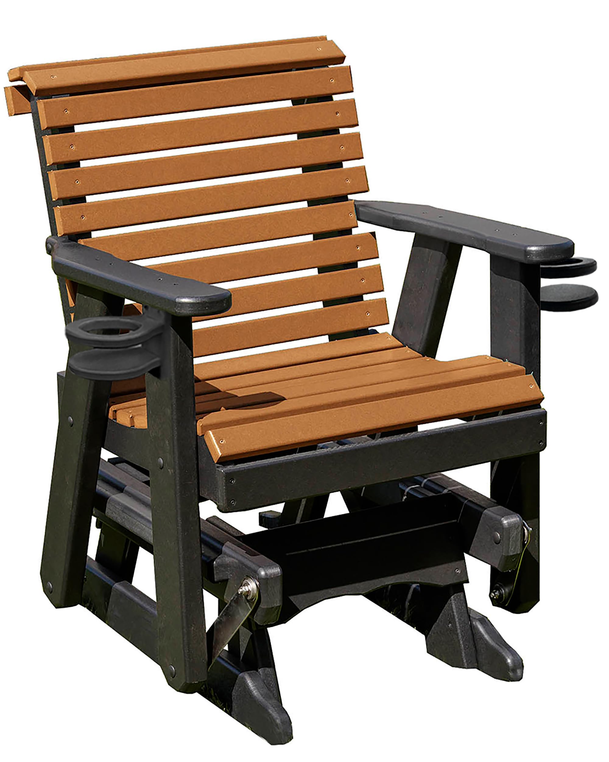 Unmatched Durability and Comfort - Handcrafted by Amish artisans in the USA. This heavy-duty glider is built from PolyTuf HDPE produced from recycled Milk Jugs here in the United States, rather than being manufactured from virgin petroleum byproducts like all other HDPE products on the market from overseas. All hardware is rust resistant Stainless steel Easy to assemble. Clear instructions and marine-grade quality hardware make assembly a snap.It comes 90% assembled - all of the slats are already screwed to the back and seat. The only assembly required is connecting the back and seat then securing the arms and the base. Contoured Lumbar Support: Lumbar design seamlessly contours the seat into the backrest, providing optimal comfort and back support for extended sitting. Built to Last: Crafted from Colored HDPE Plastic Resin, Poly is Built to Last Through All Weather. Handcrafted Quality - Each glider is meticulously handcrafted by skilled Amish artisans in Pennsylvania, using time-honored techniques and high-quality materials. The result is a unique and heirloom-quality piece that will be cherished for generations. Plastic Wood Lumber, crafted from discarded milk bottles, Through meticulous engineering, we achieve over 99% purity, creating solid plastic wood stock that contains over 99% HDPE. Envision a porch glider that invites friends and family to gather, its beauty enhancing your outdoor space while its strength assures you it will be there for years to come. This is the future of outdoor living where elegance meets resilience in perfect harmony.ÊOur products not only perform better but also last longer and look sharper.ÊGone are the days of tedious maintenance and constant upkeep. With our innovative material, you can say goodbye to the worries of fading, or splintering.Ê
