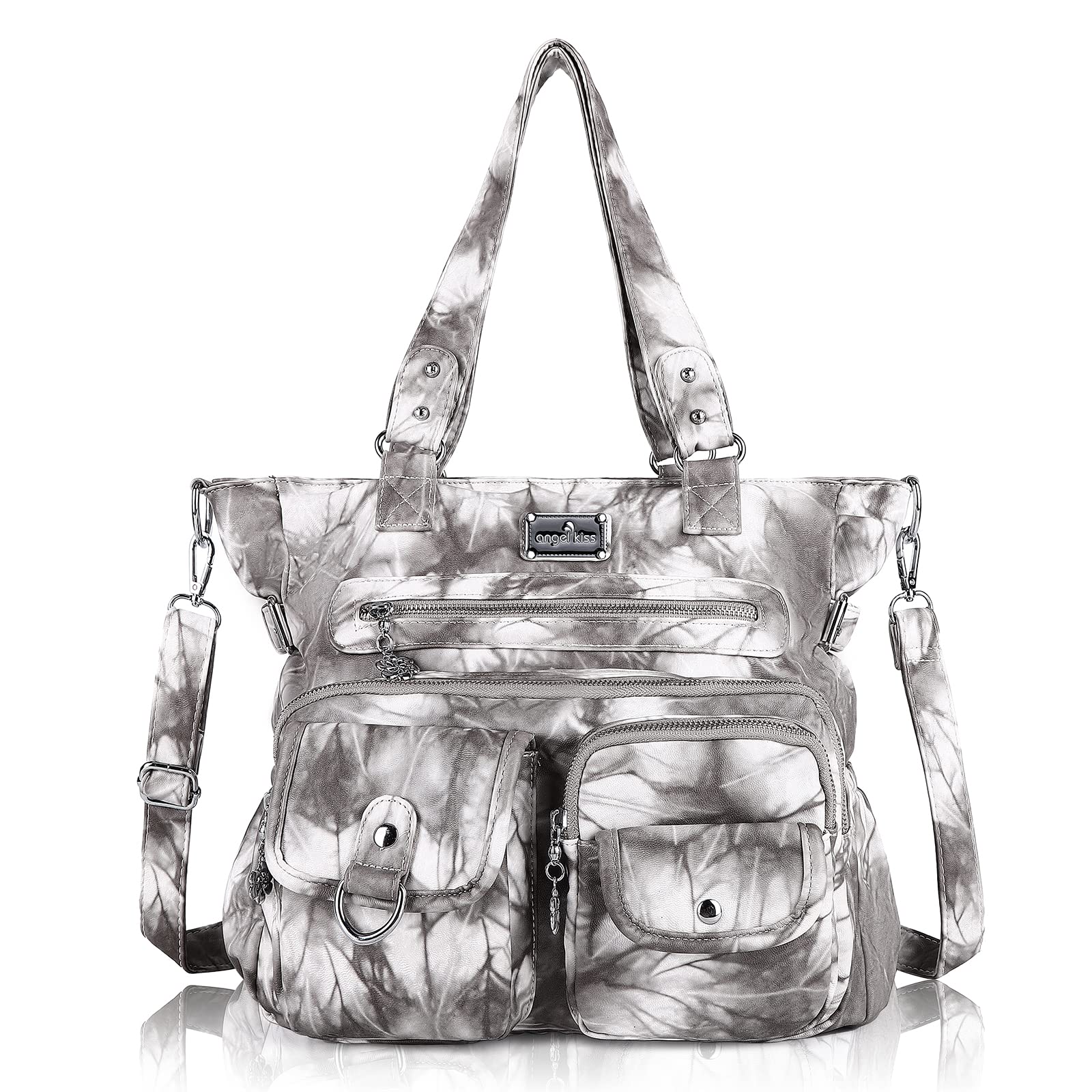 Quality Material: Ultra-soft washed PU leather Hobo handbag with fabric lining and high quality zipper. Waterproof, anti-scratch, also easy to clean. Both fashionable and practical handbag for women. Large Hobo Bag for Women Size:13"4.8" 12"(L W H) , short handle height :11",Casual style good for everyday use, it is a large purse for women Hobo Bag Structure: This women hobo purse and handbag contains 4 front zipper pockets, convenient Side pocket , 2 slot pockets inside, 1 inner zipper pocket, 1 back anti-theft pocket to protect your valuables, 2 large compartments can easily hold your daily items like iPad, umbrella, wallet and cosmetics etc. Large purses and handbags for women. Functional Shoulder Handbag: Comes with a crossbody strap for versatility which can be used as women tote handbag, top handle handbag or hobo crossbody purses handbag. Various Usage can fit you everyday different outfits and occasions. Perfect for those sunny days when carrying a handbag is not an option. Perfect Gift: This hobo PU leather shoulder handbag is the perfect combination of fashionable and durability. Perfect for Christmas Day, Valentine’s Day, Thanksgiving Day, Mother’s Day, Spring Festival, Birthday etc as a thoughtfully gift idea for your mom, wife, lover, friends. Angel Kiss Purses for Women