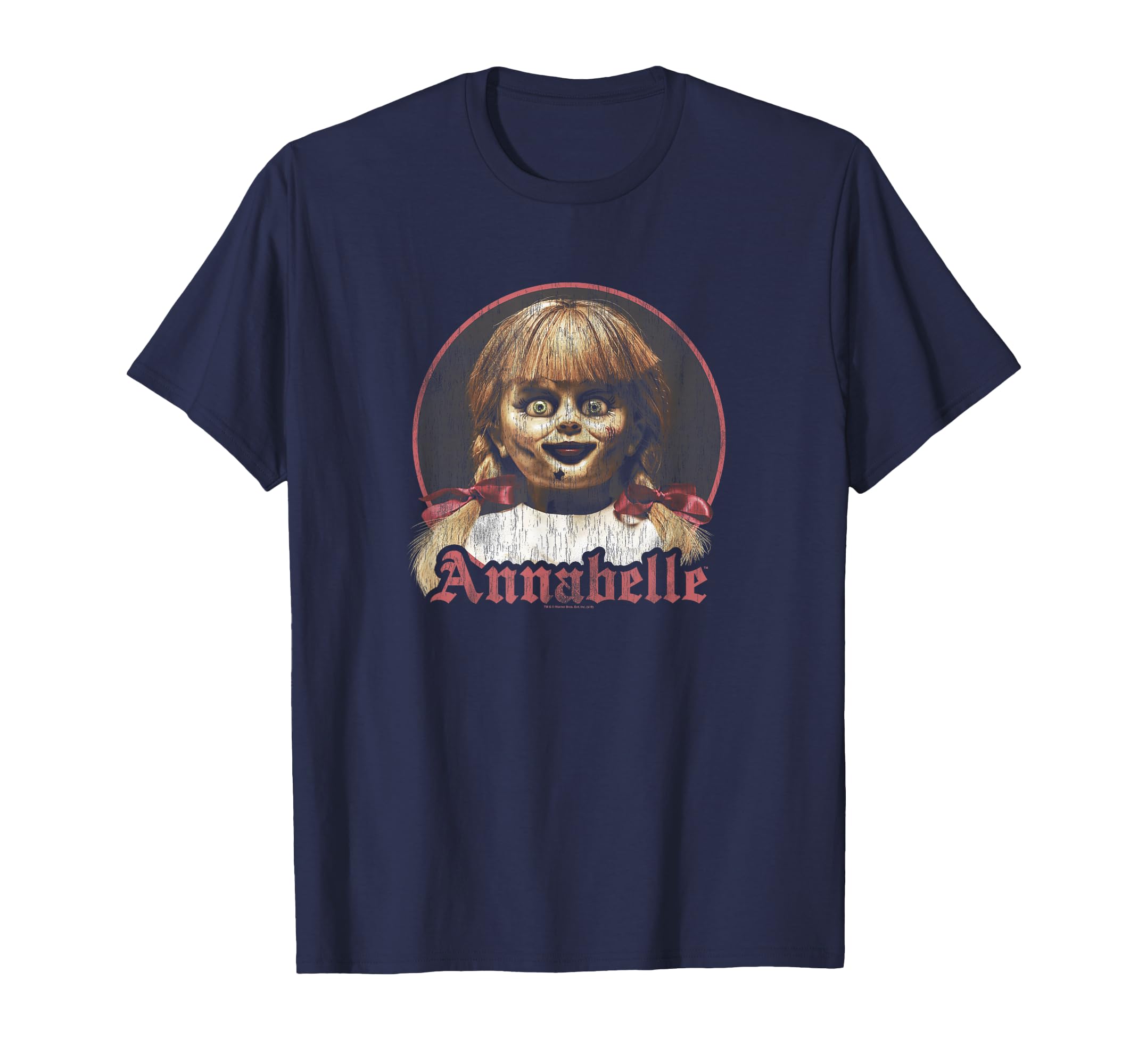 Portrait Art design. Annabelle Portrait is 100% authentic, officially licensed Annabelle apparel, that comes in t-shirt, v-neck, tank top, longsleeve, pullover hoodie, sweatshirt and zip hoodie styles! Annabelle is a horror movie that is part of the Conjuring Universe franchise. It is about a family who brings a doll into their home. Little do they know the doll is possessed by a demon intent of stealing the soul of the mother of the family. Lightweight, Classic fit, Double-needle sleeve and bottom hem