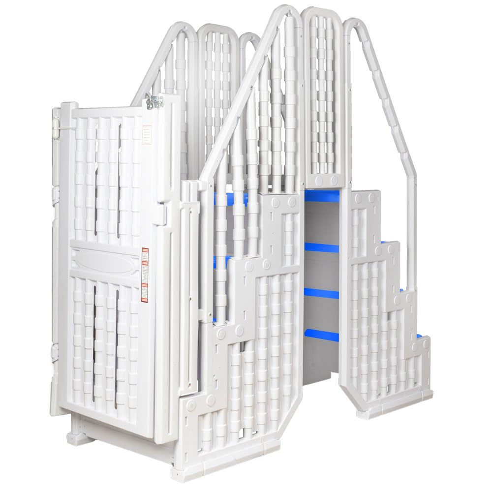 Aqua Select Everest Blue Above Ground Pool Steps | 4-Step Pool Entry System for Decks | Wide Textured Steps | Child & Senior Safe | Supports 350 lbs |