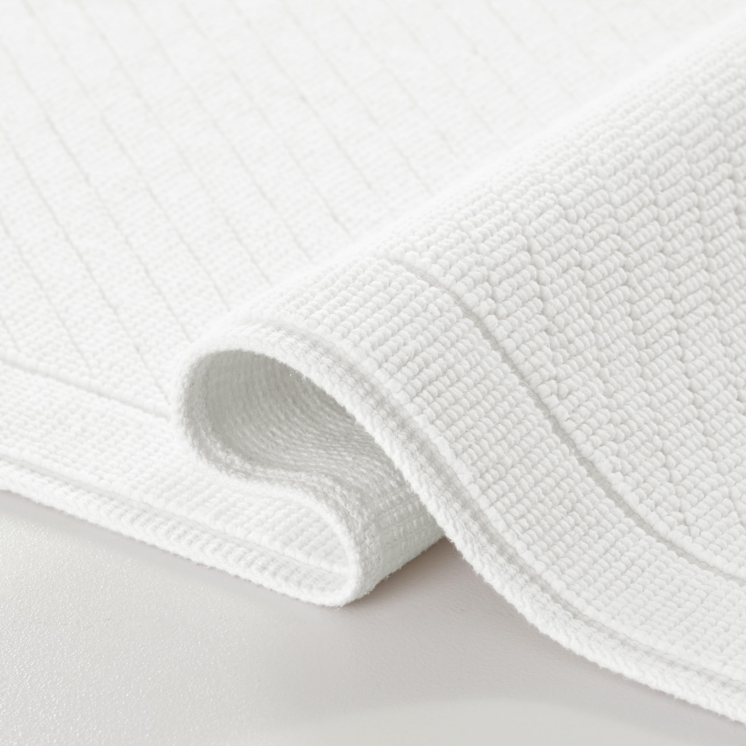 CONTEMPORARY BATH RUGS: The Host & Home Woven Cotton Bath Rug Collection features two woven patterns for a clean, modern design. Choose from multiple sizes and clean earth tones that complement any bathroom decor. These stylish, absorbent rugs will appeal to family, friends, and houseguests alike, offering a soft, absorbent floor covering for the bathroom. MODERN BATH DECOR: Transform your home's style and comfort level with our durable woven cotton bath rugs and mats. This contemporary collection boasts 5 elegant colors, featuring tightly woven construction for longevity. Elevate your bathroom with these inviting bath mats and rugs. The spa-inspired palette offers Pearl White, soft grey, soothing eucalyptus green, creamy beige, and gentle baby blue. The fresh colors and distinctive multi-directional texture add charm to your bath decor. VERSATILE RUGS & MATS: The modern woven cotton bath rug line has multiple sizes to outfit any size bath space! Choose a 2-piece set for larger bathrooms, which includes 17x24 in. and 20x32 in. bath rugs. For spas and large bathrooms, pick up two sets or a larger floor rug and create a welcoming larger space. There is also a runner, size 20x60 in. Rental property and Airbnb owners can mix and match colors or buy by the case to create a cohesive color theme throughout their spaces. CRAFTED TO LAST: This stylish bath rug collection is durable and designed with a focus on both aesthetics and functionality. Meticulously woven from strong cotton in a stylish two-weave texture, this rug is also soft and absorbent. This strong woven textile is backed with a rubbery skid-resistant backing, which provides even more durability as well as a safety feature. Its high-quality construction ensures that these rugs will last for years to come. FAMILY & GUESTS WILL LOVE IT: Our Woven Cotton bathroom rugs are the perfect accessory for any vacation rental property, Airbnb, college dorm, or boutique hotel suite. Pamper your guests with beautiful, contemporary floor mats and bath rugs from Host & Home. They will surely appreciate the attention to detail and comfort! Introducing the Host & Home Woven Cotton Bath Rug Collection. This sturdy bathroom rug was designed with two woven patterns separated by a simple outline, creating a unique new style. Available in four sizes, including a runner and a 2-piece multi-size set. Inspired by clean, serene earth tones to match any bath or spa decor, this contemporary bath rug collection offers stylish, absorbent bath rugs that will appeal to family, friends, and guests alike. A slip-resistant backing ensures improved safety over inferior bath rugs. Elevate your home style and comfort level with our woven cotton bath rugs and mats. This modern rug collection is available in five sophisticated colors and has a tightly woven construction that ensures a long lifespan. The spa-worthy color palette includes Pearl White, oyster mushroom light grey, eucalyptus green, almond milk beige, and baby blue. This contemporary bath mat collection is perfect for any bath or spa space that needs a fresh reboot! With multiple sizes and five colors to choose from, you can freshen up each bathroom in the house, the beach house, the college dorms, and the AIRBNB! Rotate bath rugs between homes for a new look! Our durable bath rug collection is the perfect blend of style and functionality. Crafted expertly from robust cotton on the technologically advanced Van de Wiele carpet weaving loom, these rugs are soft and absorbent and feature a stylish two-weave texture. They are backed with a rubber-like skid-resistant layer to ensure longevity and safety. With high-quality construction, these rugs are designed to stand the test of time, promising years of reliable performance while enhancing your bathroom's aesthetic appeal. Our Woven Cotton Bath Rug is an ideal accessory for rental properties, Airbnbs, beach or ski homes, and primary homes! Whether you are buying for your family or a rental property, any of these lovely woven cotton bath rugs will appeal to your family, friends, and guests!