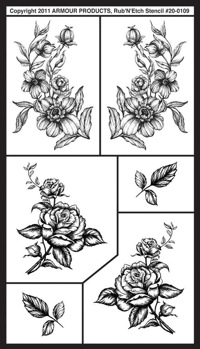 Top two roses: 3" by 2" Center rose: 2.75" by 2.25" Leaf: 1" by 1" Permanent-dishwasher safe Made in usa
