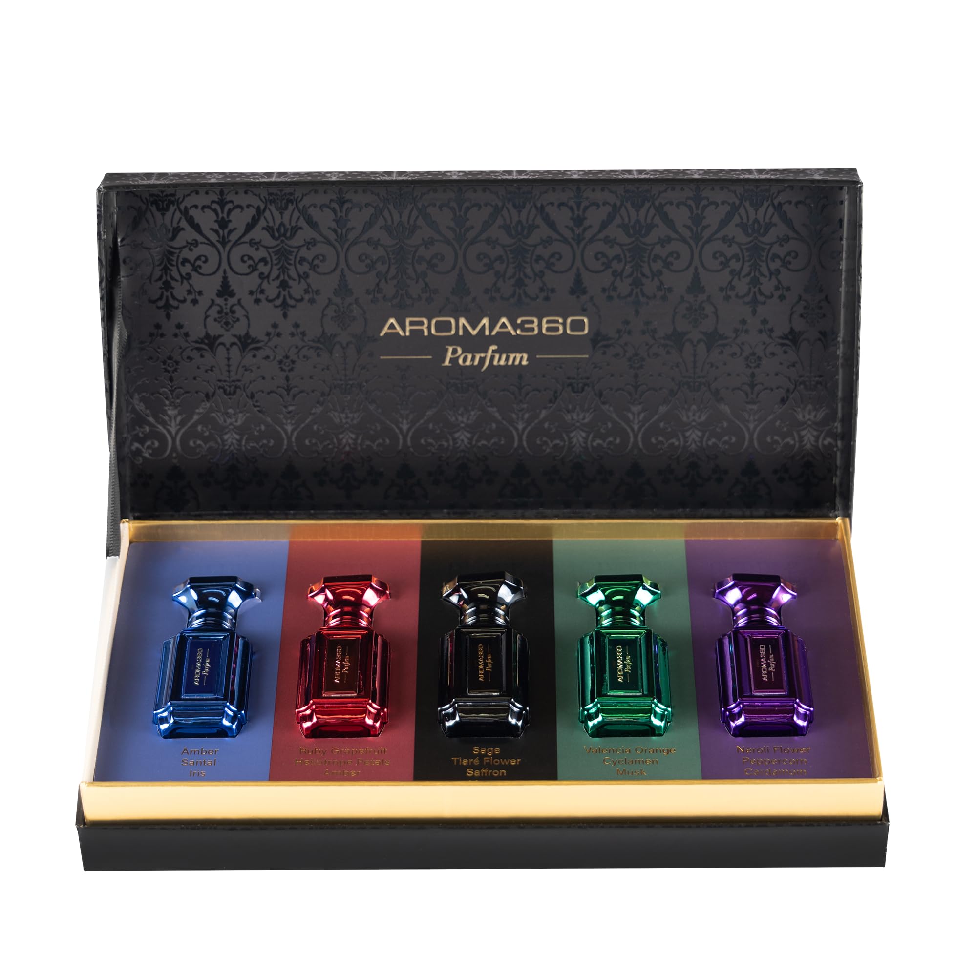 Curated Collection of Scents: The Parfum Discovery Set features a meticulously curated assortment of five 10mL coffrets, each with its own unique fragrance, designed to provide a diverse and enchanting aromatic experience. Elegant and Convenient: Packaged in a sophisticated Discovery Box, the set includes five convenient 10mL coffrets, perfect for sampling, travel, or gifting. Sensory Journey: Each fragrance is crafted to transport you to a realm of aromatic enchantment, offering a captivating symphony of scents that evoke various moods and settings. Perfect Gift Set: Ideal for fragrance enthusiasts or those looking to explore new scents, the Parfum Discovery Set is a thoughtful and luxurious gift that provides a delightful and immersive olfactory experience. Versatile Usage: The Parfum Discovery Set is perfect for any occasion, whether you're seeking a signature scent, layering fragrances for a personalized touch, or exploring new aromatic profiles for day and night. Introducing the Parfum Discovery Set, a meticulously curated assortment of alluring fragrances designed to whisk your senses away to a realm of aromatic enchantment. Indulge in this thoughtfully crafted collection's captivating symphony of scents, featuring an elegant fragrance sets in a convenient 10mL coffret. Immerse yourself in the captivating world of color as you embark on a fragrant journey like no other. Parfum Discovery Set Includes: Discovery Box Blue 10ml Coffret Red 10ml Coffret Green 10ml Coffret Black 10ml Coffret Purple 10ml Coffret Fragrance Notes: Blue: