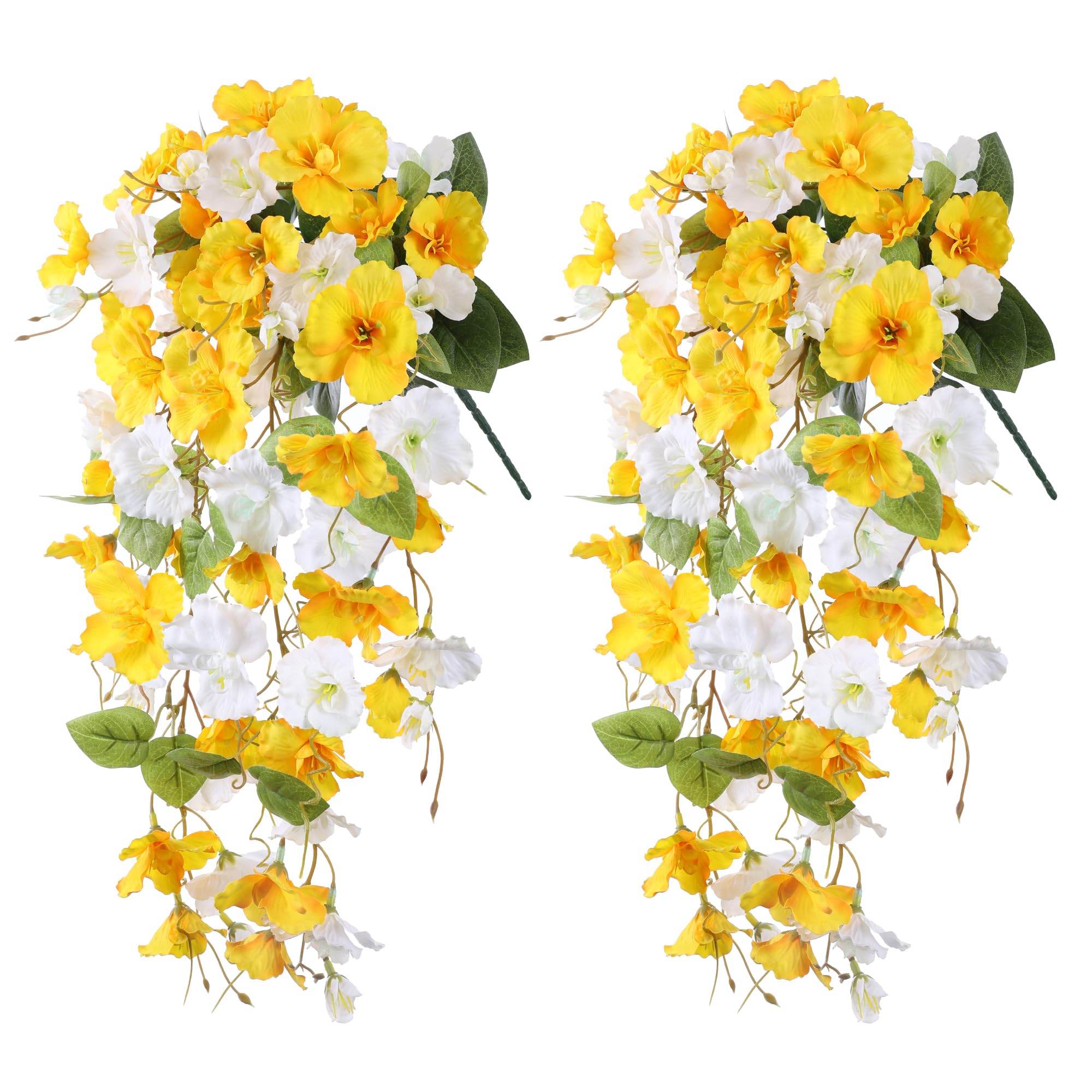 Artificial Hanging Hibiscus Flower: Include 2 pcs artificial hibiscus trailing flowers. These fake hanging flowers are beautiful and real, soft petals, leaf texture clear. These artificial flowers for outdoors are perfect decoration choice for indoor or outdoor Waterproof & UV Resistant & No Fade: These artificial outdoor plants vines withstand the elements, no fade in the sun and waterproof, providing year-round beauty in any environment. Free Maintenance: No need for watering or sunlight – these faux outside flowers stay fresh and vibrant year-round. It’s easier to maintain than fresh flowers, more affordable. Great for Special Occasions: Create a memorable and surprise atmosphere for events or celebrations with the vibrant presence of these faux flowers for outdoor planters. The fake hanging flowers are perfect for home, outdoors, outside, front door, porch, hallways, patio, balcony, garden, yard, party, wedding, birthday, Valentine's Day, Mother's Day, baby shower, Easter decoration. Lifelike Artificial Greenery Decoration: These fake outdoor plants provide the beauty of real flowers without the need for maintenance. Realistic silk hibiscus flowers. Enjoy vibrant blooms year-round, regardless of the season or weather conditions. How to create a beautiful home and gardens?