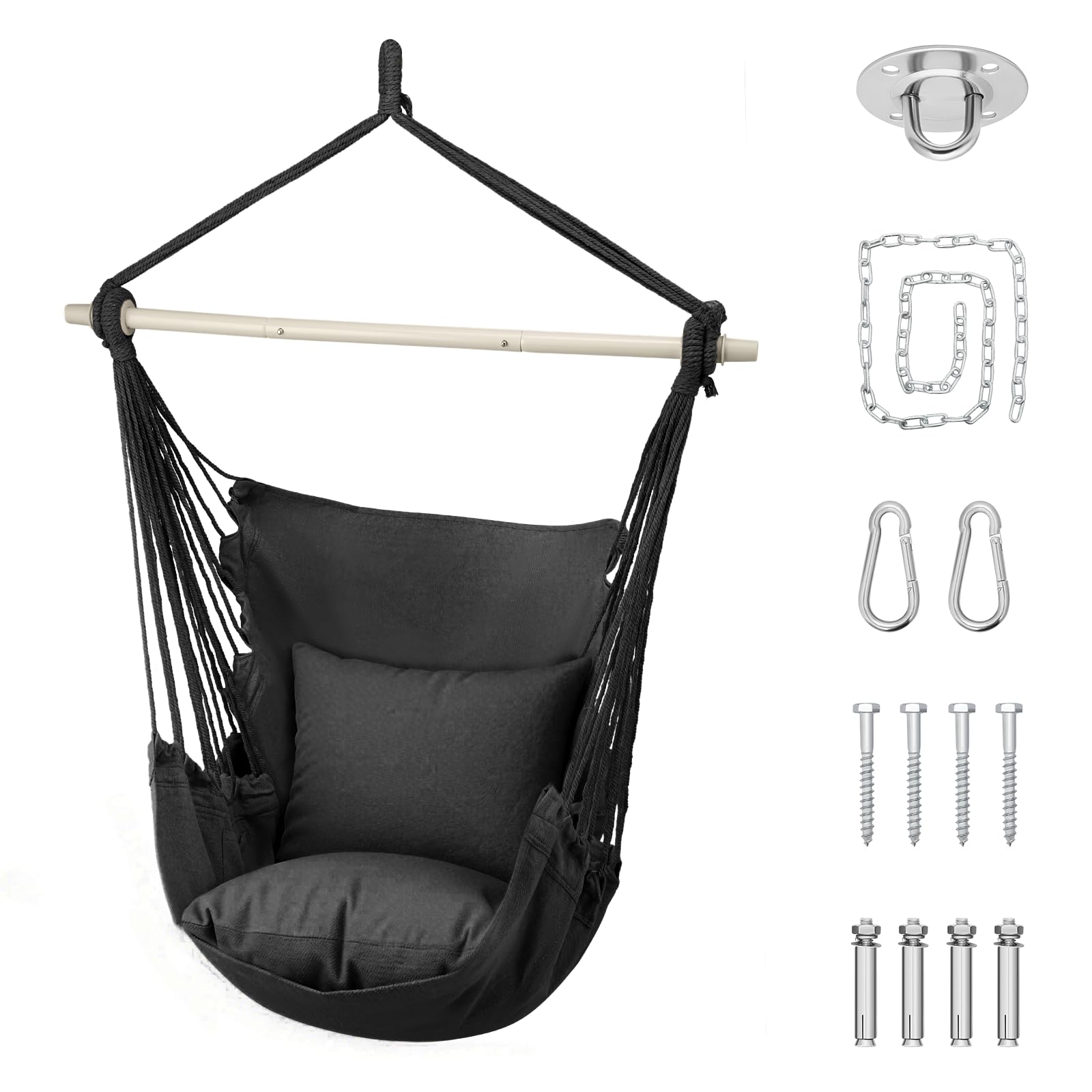 Hanging Chair with 2 Cushions: Featuring a thick seat cushion for added comfort and support, this set includes a removable cushion that facilitates air circulation, keeping you cool in warmer conditions. The added side pocket offers convenience for storing essential items.