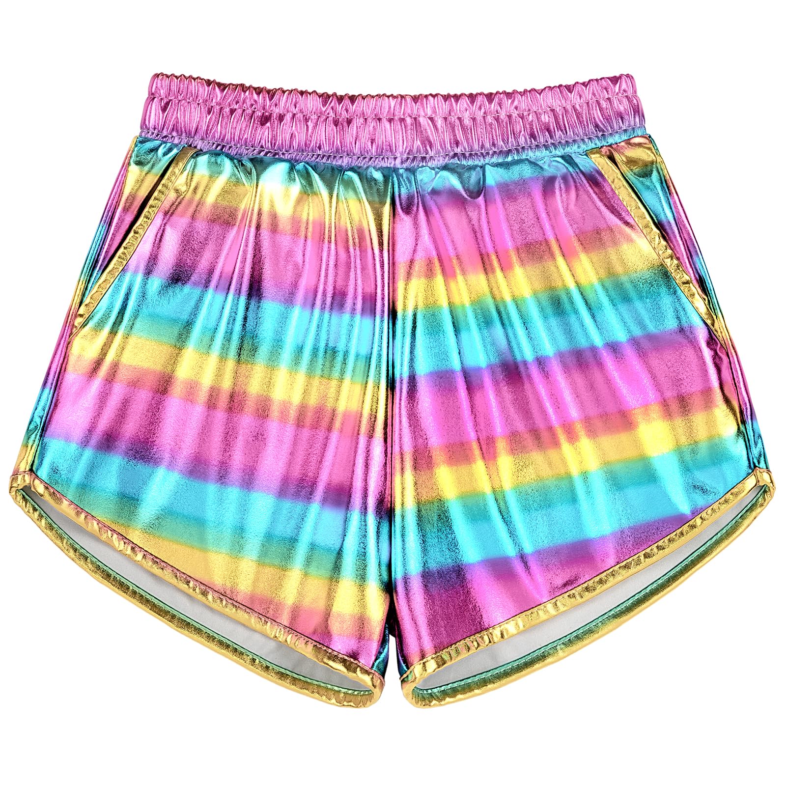 Sparkly Shorts: Girls metallic shorts are lightweight, breathable and comfortable to wear, and the smooth glittery metallic color will make you stand out from the crowd! Girls Shorts: Two side pockets design , enough to put your belongings, free your hands, so you can have more fun when you go to the party. Girls Dance Short: pants pattern and the elastic waistband design design looks fashionable , not too loose but not too tight, make you comfortable all day long. Shiny Hot Short: Perfect for Rave, Music Festival, Party, Christmas, New Year, Dance, Yoga, Sports, Cosplay, Halloween, Daily Casual Costumes. Tips: In order to maintain the shine and durability of the metallic texture, it is recommended to wipe with a damp towel or hand wash gently and air dry, do not bleach, do not iron.