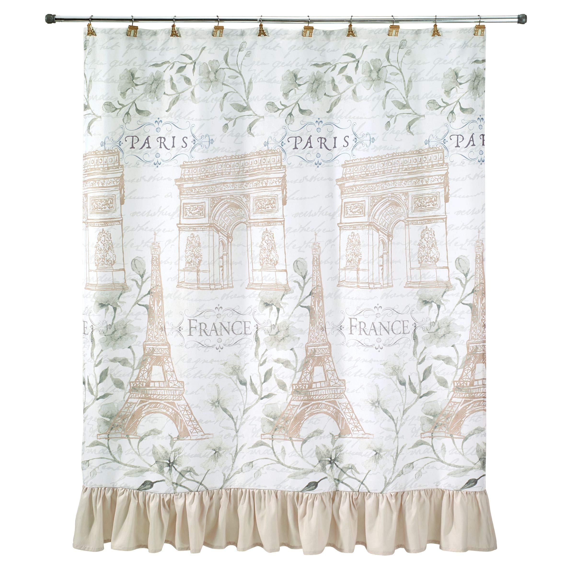 INCLUDES: (1) Shower Curtain QUALITY: Made of 100% polyester EASY CARE: Machine washable, tumble dry low SIZE: 72 in. L x 72 in. W DETAIL: This collection brings you the classic icons of the world's most romantic city, including the Arc de Triomphe and the Eiffel Towel (Tour D'Eiffel)