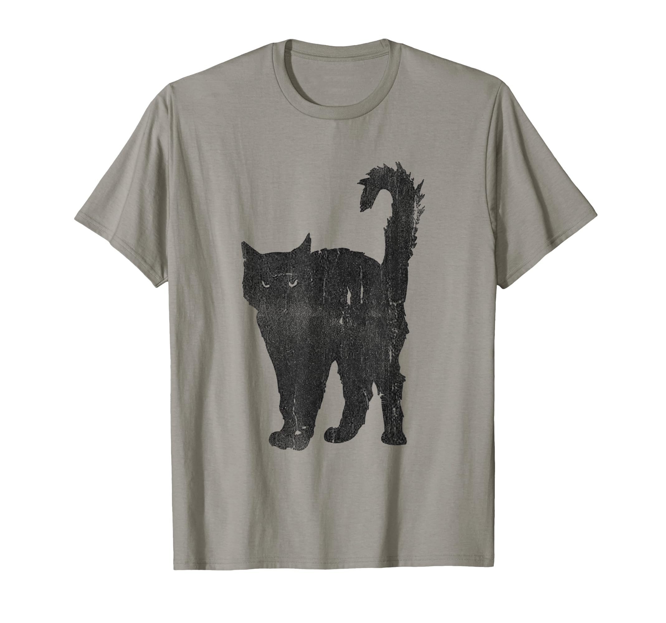 Awesome cool badcat black kitty silhoutte design/ Punk rock distressed style. This cool black cat shirt would make an awesome gift or look cool as cat underneath a leather jacket. Lightweight, Classic fit, Double-needle sleeve and bottom hem