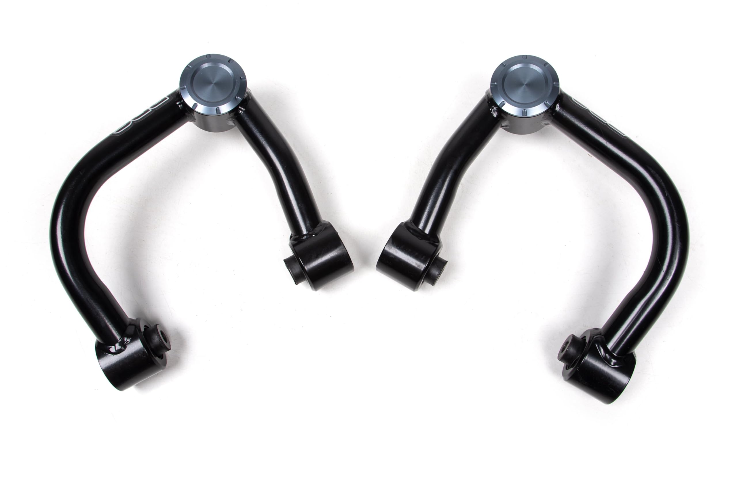 High strength 1.5-inch tubular construction improves strength and durability over stock UCA FK uniball assembly offers high angle suspension travel with maximum strength and durability Factory style rubber bushings for long lasting, maintenance-free operation Adds caster correction for use on lifted Broncos Fully assembled and ready to install right out of the box Take your ride to new heights with a BDS Upper Control Arm Kit compatible with Ford Bronco 2021-2023. Specially designed for leveled and lifted applications, these arms are built from high-strength 1.5-inch OD x .120-wall steel tubing and feature an indexed ball joint cup to correct the ball joint positioning. These UCAs can be used with BDS lift kits and other lift and leveling kits on the market.