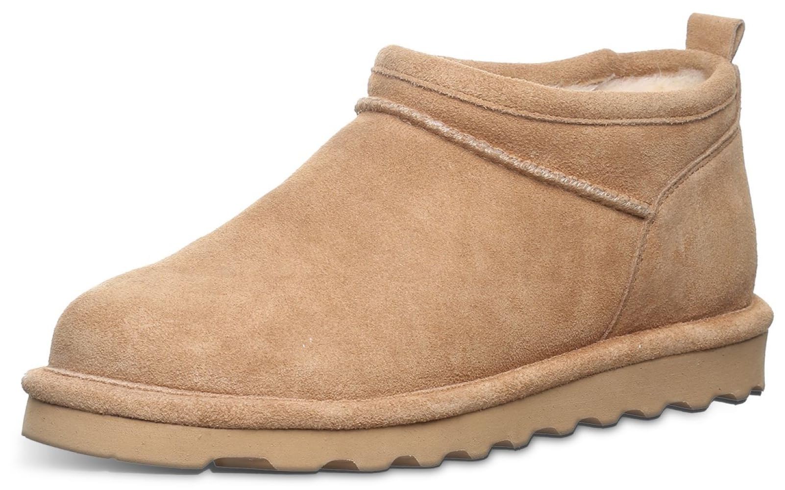 COMFORTABLE HIGH-QUALITY MATERIAL: Hey there, shorty! If you want to rock a warm winter boot with a cute, cropped look, these ones are for you. The BearCoat treated suede exterior will keep the rain and snow out, but the extra short style will take away some of the bulkiness of other classic boots. Lightweight, durable, and plushy — these boots have it all. COZY SHEEPSKIN & WOOL BLEND LINING: Our 3 inch shaft height Women's Super Shorty Slip On Boot features wool blend lining that regulates body temperature to keep your feet warm. The sheepskin comfort footbed provides additional softness and reduces foot fatigue. STURDY OUTSOLE FOR INDOOR & OUTDOOR USE: These boots' lightweight blown rubber outsole makes this women's winter boot the ideal indoor/outdoor choice. BEARCOAT: BearCoat, our PFOA-free rain & stain repellent. BearCoat is the ultimate solution for keeping your favorite shoes looking new and fresh for longer! Specially formulated to provide an invisible barrier that protects against spills, stains, and dirt, making it the perfect addition to each and every pair. THE STORY OF BEARPAW In 2001, a young Tom Romeo was searching for a sign that would help him choose between his two passions. Like many people, Tom has a special spot that is his “happy place”, where he finds time to meditate and listen to nature. While sitting on the special rock located on the shores of Lake Tahoe, a massive bear suddenly paused a short ways away from him, stared directly at him for a moment, and decided to move along without any confrontation. This magical experience had to be some sort of sign, and it inspired Tom to seek out the meaning of this encounter. Tom soon learned that a bear crossing is viewed by many as a sign of good luck and while symbolizing strength, the bear serves as a guide for many at an impasse. All doubt had gone away for Tom and he knew this was an opportunity to start his own shoe company founded on this great animal, with the name BEARPAW as an homage to his chance meeting with that bear in Tahoe. Shortly after, the very first BEARPAW boot style was created, called EVA. Since then, the EVA has evolved into our ELLE boot, and is still the most popular shoe style in the company’s collection. Both EVA and ELLE embodied the BEARPAW lifestyle with their warmth and effortless style. The BEARPAW team now creates shoe styles for all walks of life, so you can live life comfortably wherever you are.