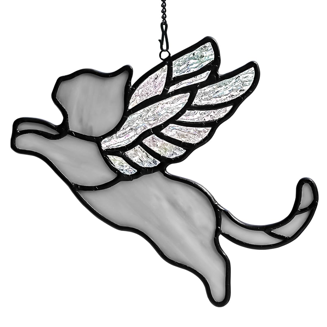 ANGEL GRAY CAT DECOR: Keep your kitty's memory alive, as you bid farewell to your beloved feline companion, one of life's most heart-wrenching moments, allow this stained glass window hanging pendant angel iridescent wings grey cat to serve as a cherished keepsake, honoring the memory of your dear cat. Keep it near you as a souvenir and you will always remember the good times you had together STAINED GLASS MATERIAL:The Product Consists of Hand-Cut Stained Glass Sheets Welded Together Using the Copper Foil Method,Each Piece is a Real Stained Glass,High Temperature Resistance,Fire Resistance and Non-Fading (Note: The Product Glass May Have Small Bubbles Due to the Process) STAINED GLASS SUNCATCHER: Gray cat stained glass decor will bring you positive emotions with its grace, aristocracy and beauty. Great gifts for anyone who loves grey cats, stained glass, or who is looking for a pet loss gift or cat memorial gift. A cat departing from its master will turn into an angel. The angel cat memorial gifts stained glass window hanging can be used as suncatchers for indoor windows, stained glass window hangings, or kitty decorations for your room CAT MEMORIAL GIFTS: If your best friend's cat passed away suddenly and you can get her a cat memorail gift that would make her smile instead of be sad when she looks at it. This stained glass angel cat ornament was perfect! She will loves it, and makes her laugh every time she look at the window. A great bereavement gift, these are wonderful loss of cat sympathy gifts for cat lover and a perfect memorial gifts for loss of a beloved cat BOXCASA AFTER-SALES SERVICE: Don't Worry About Purchasing This Home Decoration. We Provide You With a Satisfaction Guarantee, Allowing You to Purchase With Confidence. If for Any Reason You are Not Completely Satisfied With the BOXCASA Product, Please Contact Us as Soon as Possible and We Will Do Our Best to Provide Assistance. For cat lovers, this ornament is a very special and meaningful gift. The cat figure is charming and can be clearly appreciated, and the quality of the glass and solder looks like a small stained glass window.It can be hung near a window to let the light shine through the glass and create a beautiful effect. It also has a sucker to be placed on some furniture or wall, allowing the flexibility to place it anywhere desired.