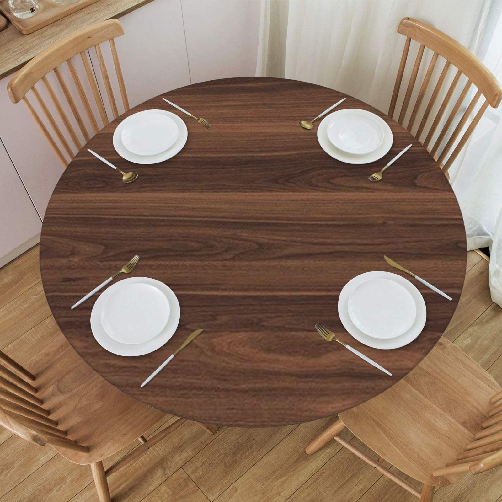 BOXIMIAO Brown Aged Wood Grain Round Tablecloth with Elastic Edge Table Cover Waterproof Reusable Table Cloth for Holiday Kitchen Party Patio,S(40"-44
