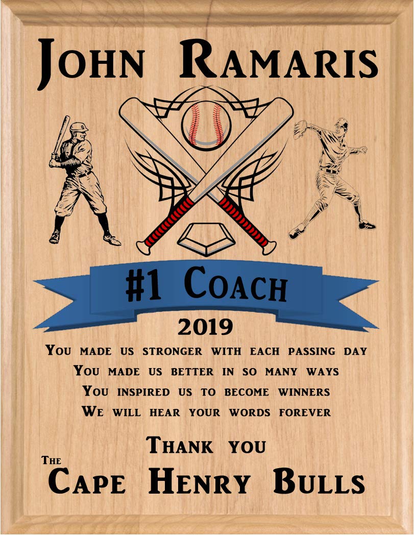 SUPER FAST - CREATED SAME DAY! MONDAY- FRIDAY If Ordered By 2:00PM Eastern Time - CUSTOM Baseball Coach Gift Plaque - Make Your Baseball Coach Gift EXTRA SPECIAL With Personalization! The Perfect Baseball Coach Gift That Will Be Cherished As A Thank You Keepsake For Years To Come. The Unique Personalized Coach Artwork Is Carefully Applied In A Unique Process Developed By Broad Bay To Allow The Beauty of The Solid Wood To Be Appreciated. This Broad Bay Personalized Solid American Maple Hard Wood Coach Plaque Measures 8.5" x 11" And Is Made In Virginia. FAMOUS BROAD BAY QUALITY - SOLID WOOD - PERSONALIZED FAST AMAZINGLY FAST - CREATED SAME DAY! Mon-Fri - Give distinction and honor to the greatest baseball coach with a personalized solid American beech, hardwood plaque. Endearing terms that are representative of a great baseball coach's attributes are artistically portrayed in a creative word cloud fashion. This personalized baseball coach's gift will proudly be displayed by an all star baseball coach on his or her wall or desk for years to come. This high quality, personalized 8.5" x 11" solid wood plaque may be personalize with the valued baseball coaches name, the name of the team, and the year. The customization of this American made, hardwood plaque, will be artfully applied by a unique Broad bay process which magnifies the beauty of the natural solid wood plaque Give your baseball coach the tribute they deserve by honoring them with a first-rate American made award. Meticulously crafted in Virginia, this personalized award will reflect the dedication and time your baseball coach graciously granted your team!