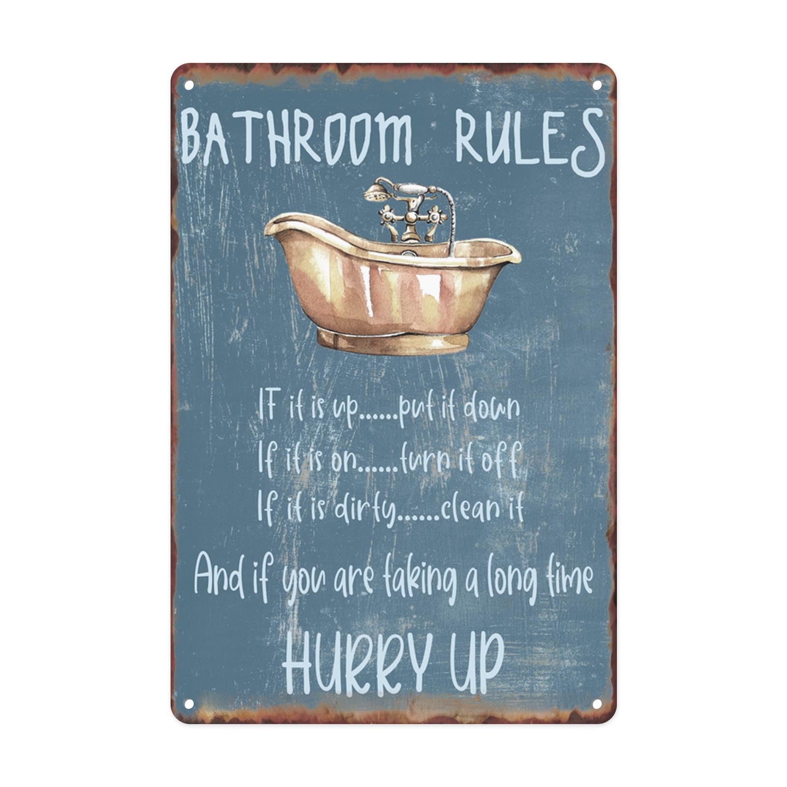 Dimensions and Materials: This vintage metal tin sign is 8" x 12'' and made of crafted from high-quality aluminum, resistant to bending, rust, and fading. Colors remain vibrant, even when used outdoors. Creative Design: Unique retro textures and colors, featuring captivating and detailed patterns, are carefully designed to add a sense of history, and personality to your home space. Easy to Hang: The decorative metal sign has four pre-drilled holes for easy hanging. It can be easily installed on posts, fences, doors or walls using nails, rope, double-sided tape, straps, or other hanging methods. At the same time, each sign is equipped with folded edges for added safety. Applicable Scenarios: This retro metal sign is Ideal for decorating indoor and outdoor spaces, such as living rooms, restaurants, bedrooms, bathrooms, garages, porches, bars, cafes, billiard rooms, and clubs etc. Special Gift: Perfect for gifting, this retro decoration is a delightful surprise for family, friends, relatives, clients, and teachers. Suitable for any occasion - birthday gifts, graduation gifts and various festivals, etc Retro metal sign home decoration, its unique design and color inject new vitality into the space, and the retro texture shows your unique artistic taste and personalized atmosphere.Size: 8" X 12", thickness is approximately 0.1 inches.Scene: This sign is suitable for a wide range of settings, including doors, living rooms, bedrooms, bathrooms, porches, kitchens, garages, bars, clubs, cafes, and more.Gift: This metal tin sign is suitable for any occasion and location, they are suitable for almost all scenes and everyone, making them an excellent gift option.