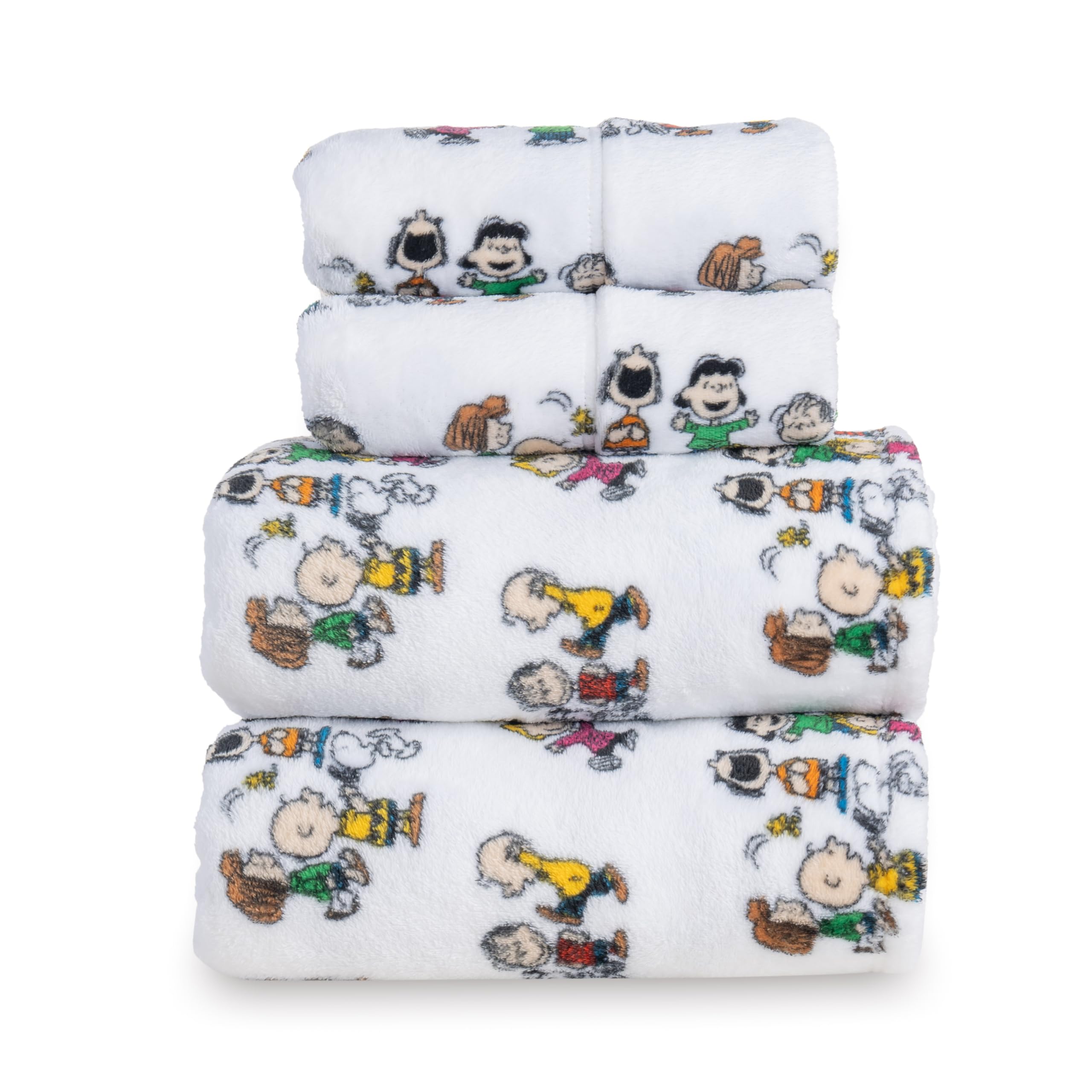 [Plush Comfort] Crafted from our signature VelvetLoft fabric, this sheet set provides a silky soft finish with lightweight and breathable warmth that's perfect for any season. [Great for Peanuts Fans] This officially licensed Peanuts sheet set is made for the Snoopy fan in your life. The fun pattern brings your favorite comic to life, adding a cheerful touch to your decor. [The Perfect Fit] The fitted sheet is designed with deep pockets and all-around elastic to ensure a snug fit on mattresses up to 13 inches deep. [Classic Set-King] This set comes with 1 flat sheet (102 in x 108 in), 1 fitted sheet (78 in x 80 in which can hold up to 13" deep mattress), and 2 pillowcases (20 in x 40 in). [Machine-Washable] This sheet set can be machine-washed separately in cold water on a gentle cycle and tumble-dried with no heat. 4-Piece sheet set product includes 1 flat sheet(102”x 108”),1 fitted sheet(78”x 80”),2 pillow cases(20”x 40”).