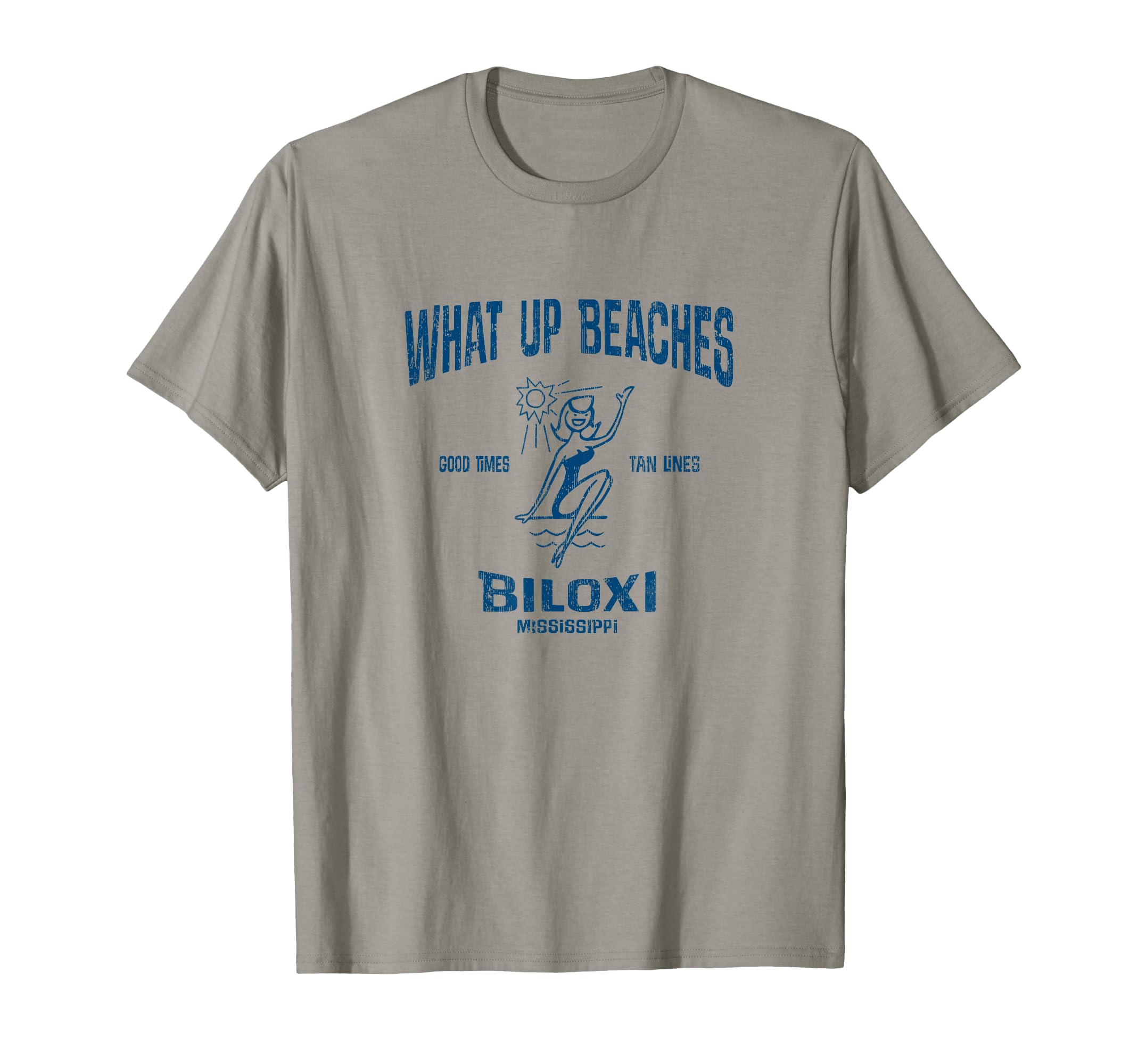 What Up Beaches vintage Biloxi Mississippi MS graphic t-shirt. This funny tee features a retro slightly worn distressed novelty design. This unique souvenir tee is a must have to wear on spring break as summer clothing or cover ups on a girls trip. This cute beach t shirt makes a great gift for those from or call Biloxi MS home. Perfect for a beach bum sun tan seeker sailor or surfer. This unique souvenir graphic tee is available in several colors mens womens kids tees & tops. Lightweight, Classic fit, Double-needle sleeve and bottom hem