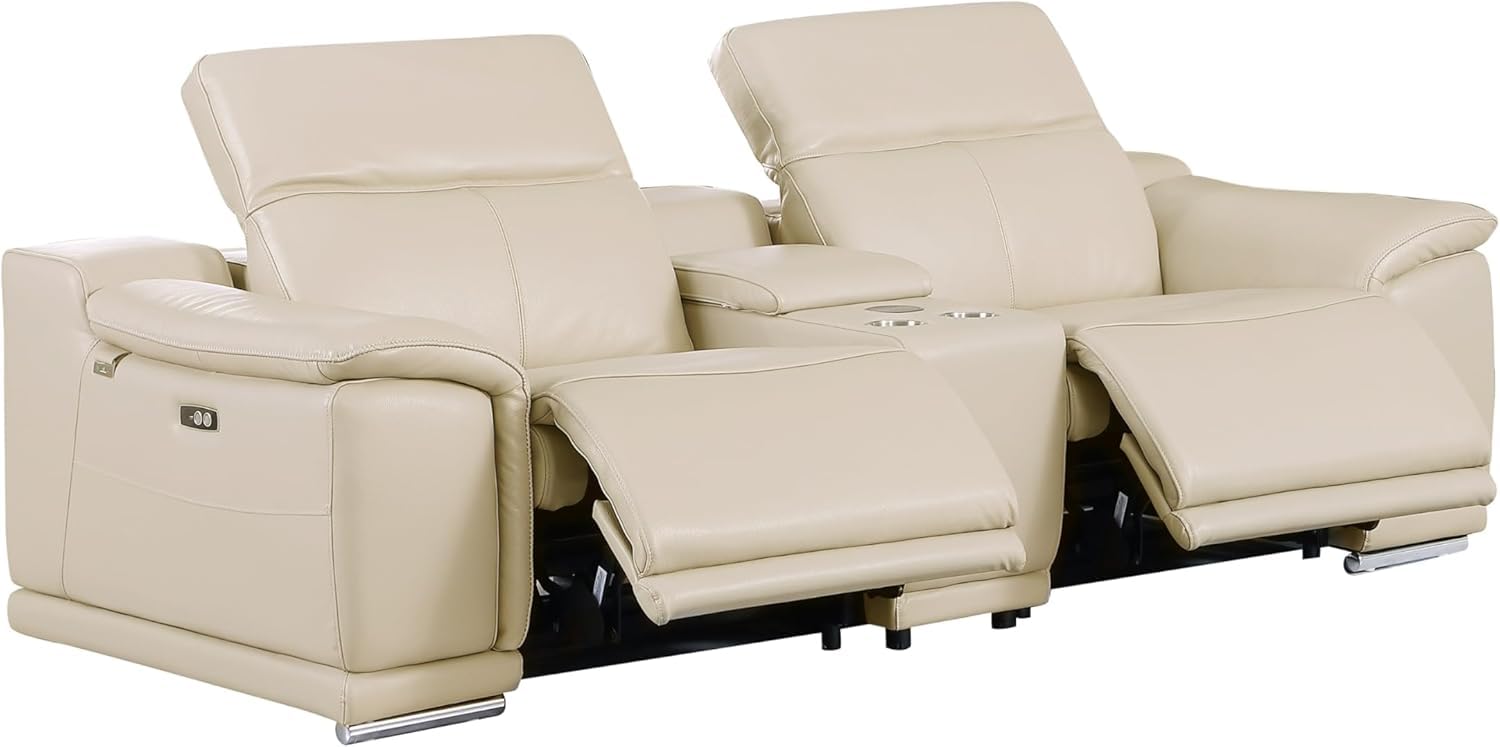 Italian Leather Luxurious Italian Leather: Indulge in the opulence of premium Italian leather upholstery, offering unmatched comfort and sophisticated style, elevating your relaxation experience to new heights of luxury and refinement. Advanced Features for Ultimate Comfort: Immerse yourself in ultimate relaxation with advanced features including power recline, power headrest, and lumbar support functions, providing tailored comfort and support precisely where you need it most, ensuring every movie night is a memorable experience. Convenient USB Port: Stay connected and powered up without ever leaving your seat, thanks to the integrated USB port conveniently located within arm's reach, allowing you to charge your electronic devices effortlessly while enjoying your favorite entertainment. Thoughful Design Enhancements: Elevate your home theater experience with thoughtful design enhancements such as built-in wine glass holders, wireless phone chargers, and deep storage compartments nestled within the middle console, keeping your essentials close at hand for added convenience and enjoyment. Exquisite Craftsmanship: Meticulously crafted with attention to detail, our loveseat boasts a rigorously checked production process ensuring top-notch quality from start to finish, from the hand-selected top-grain Italian leather upholstery to the sturdy Brazilian wood frame construction, promising enduring comfort and style for years to come. Minor assembly required. Dimensions: 93" W x 41" D x 31" H.