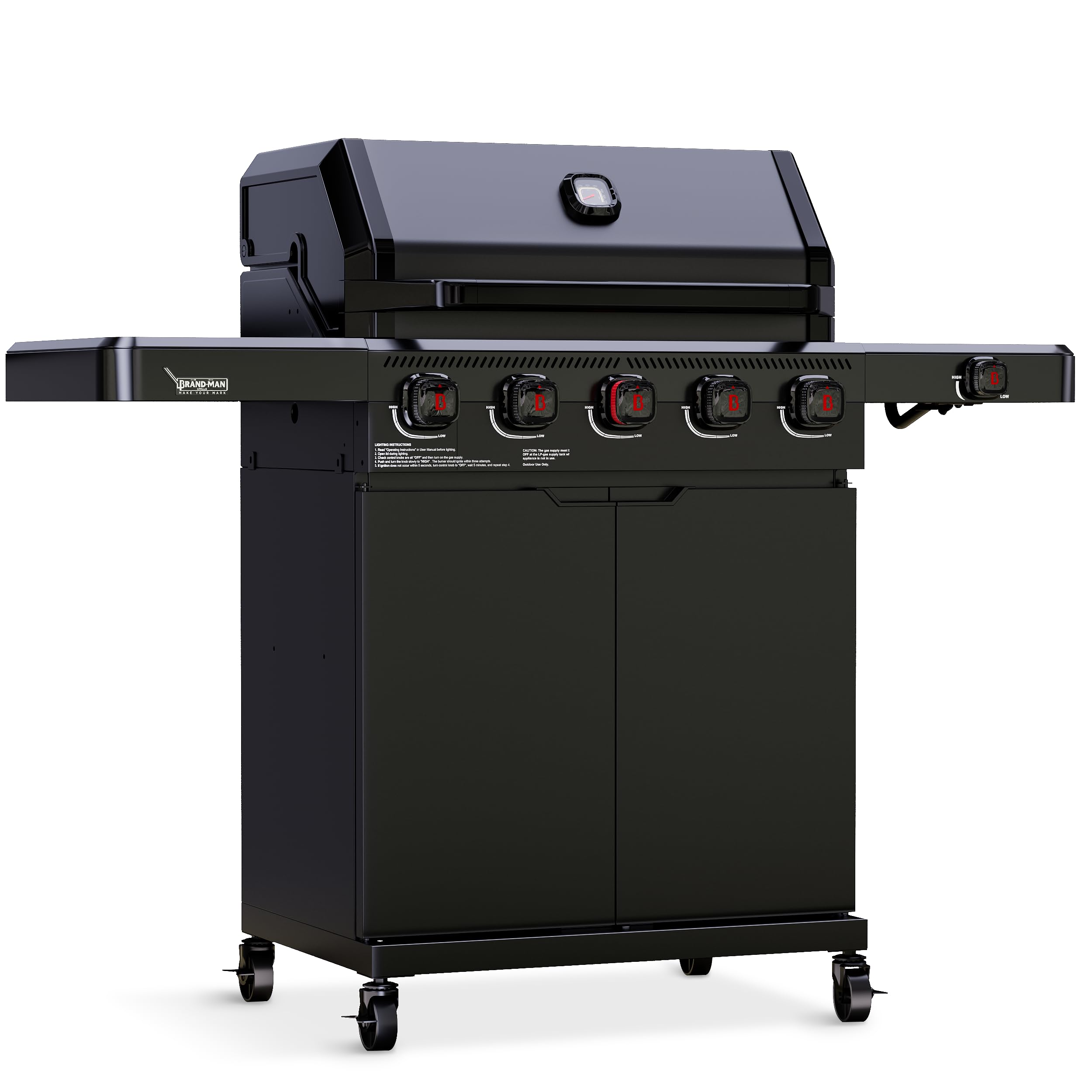 Juicy Perfection: Get that irresistible, crispy crust and juicy interior. Our 14,000 BTU Searing Zone with unique infrared-mesh delivers scorching, consistent heat. It instantly caramelizes food, sealing in natural juices and rich flavors Pro-Level Flame Control: Our grill delivers a true low flame for slow-roasting – A feature not found on most outdoor grills! Seamlessly switch between high-heat searing (for ribeyes with a caramelized crust) and low-and-slow roasting (for fall-off-the-bone brisket or tender veggies) One System, Endless Opportunities: Elevate your cooking with the Gourmet BBQ System—a premium setup featuring a porcelain-enameled cast iron grates and EXTRA griddle(d=12''). Perfectly char burgers on the grill grate, sear steaks on the griddle, stir-fry in a wok, or even bake pizza - all on one versatile surface. (*Wok/pizza stone not included) Spacious & Organized: Enjoy 30% more space than standard grills with our expansive 673 sq.in. cooking area. The built-in chicken hanger roasts legs vertically while the warming rack keeps food hot - grill large batches effortlessly without crowding Convenience & Durability: Engineered for lasting quality and effortless grilling, our die-cast aluminum lid delivers superior heat retention while staying lightweight. Enjoy fuel flexibility—switch between propane and natural gas seamlessly with our hassle-free conversion Brand-Man PRO 5-Burner BBQ Gas Grill, Propane Grill with 14000 BTUs Searing Zone with Infrared-Mesh, Porcelain-Enameled Cast Iron Grates and Griddle and Side Burner for Outdoor Barbucue Cooking